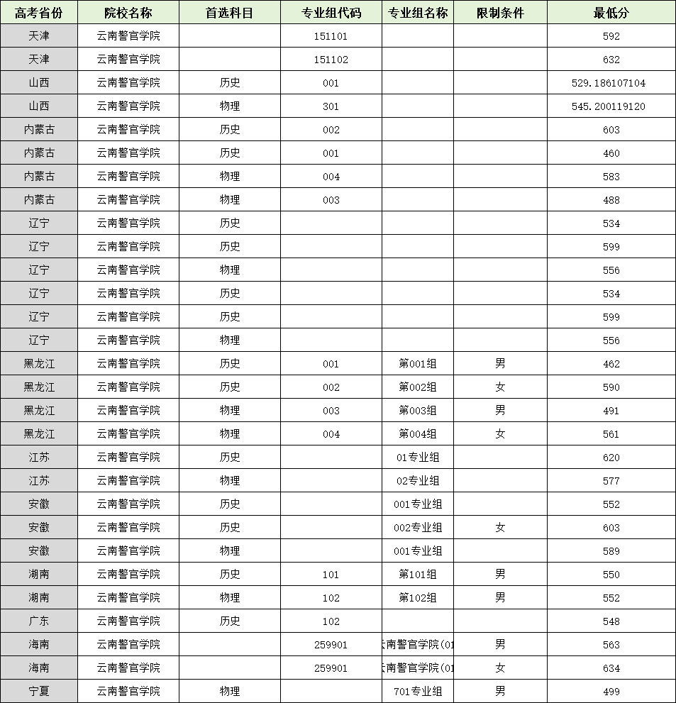 点击查看→云南警官学院全国录取分数线一览表