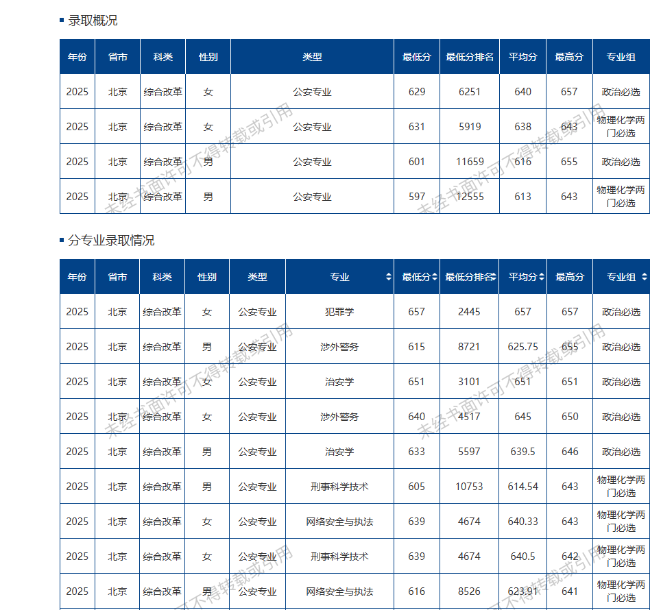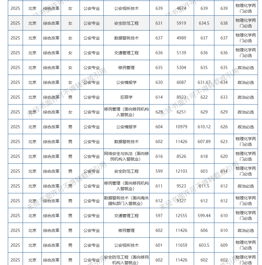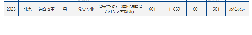 下面展示中国人民公安大学2025年在北京的公安专业录取分数线: