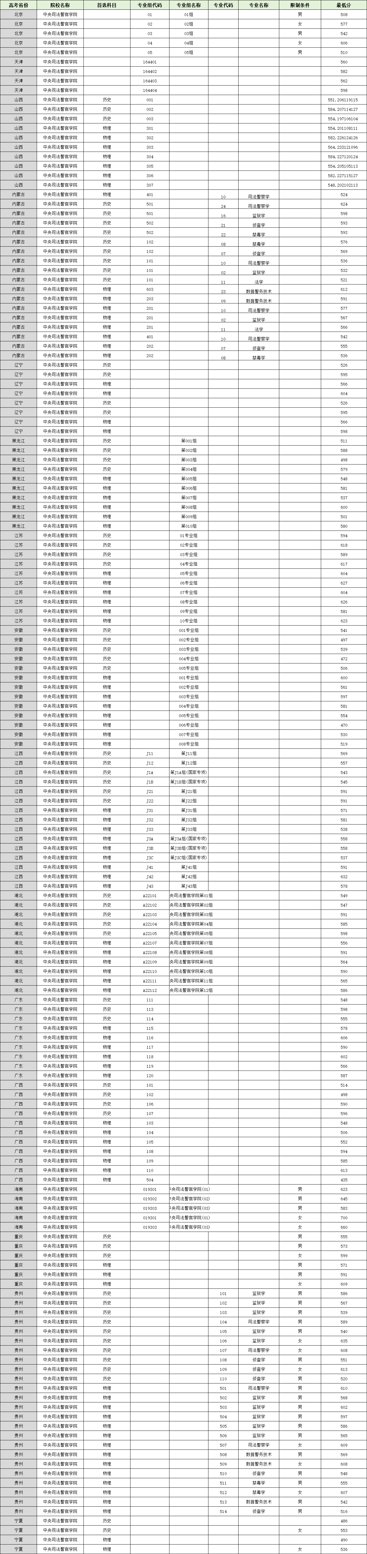 点击查看→中央司法警官学院全国录取分数线一览表