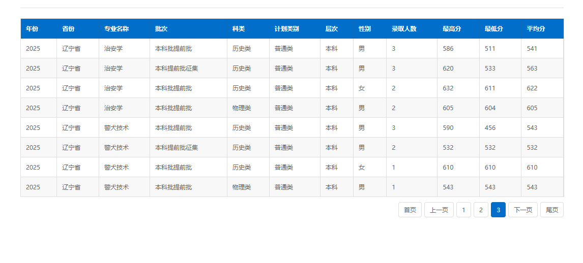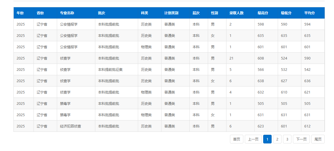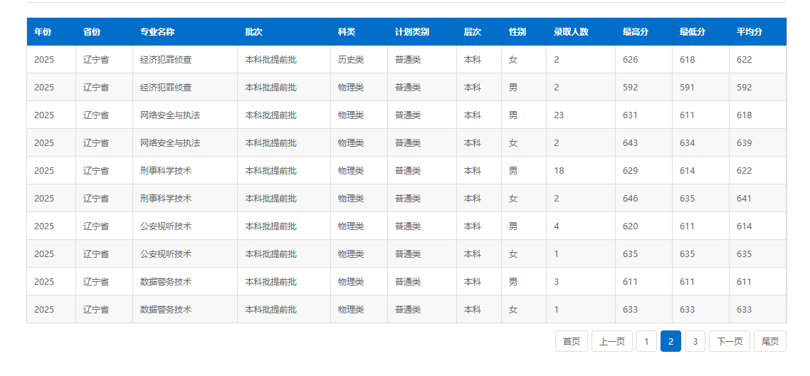 下面展示中国刑事警察学院2025年在辽宁的公安专业录取分数线: