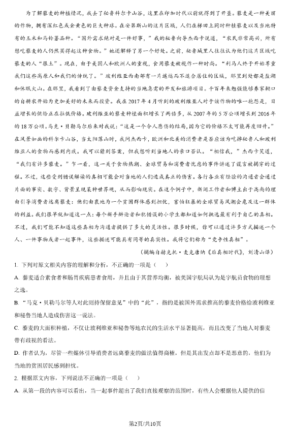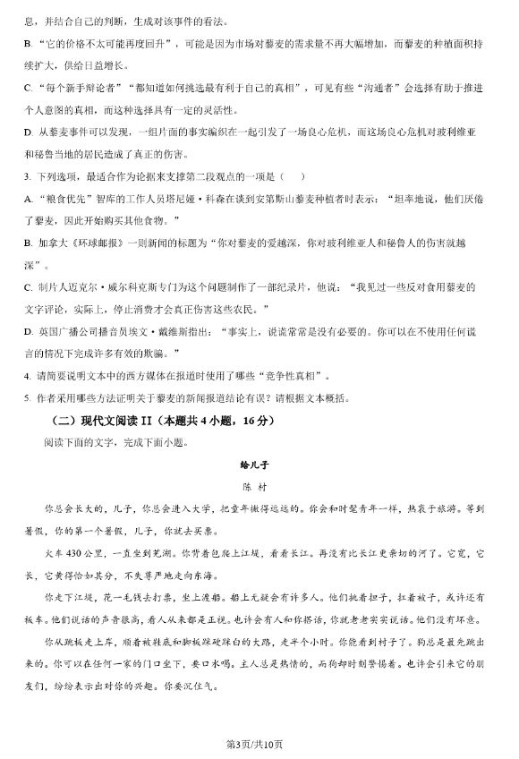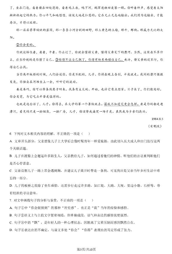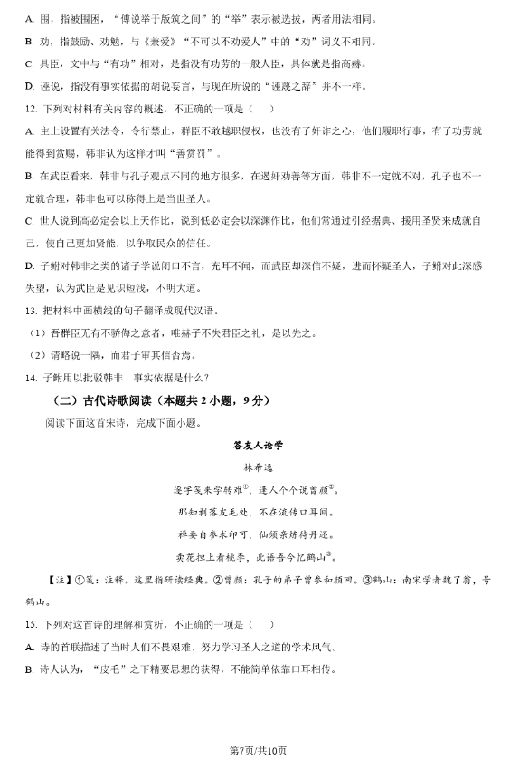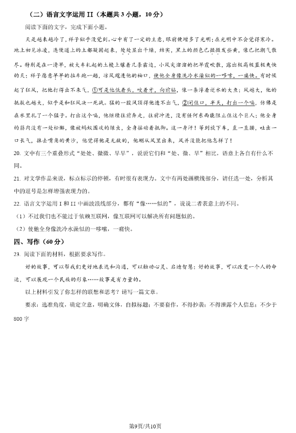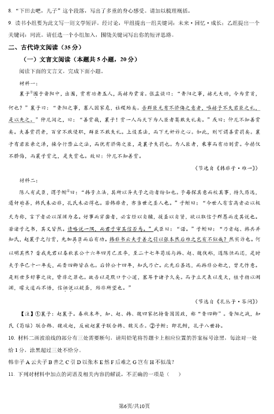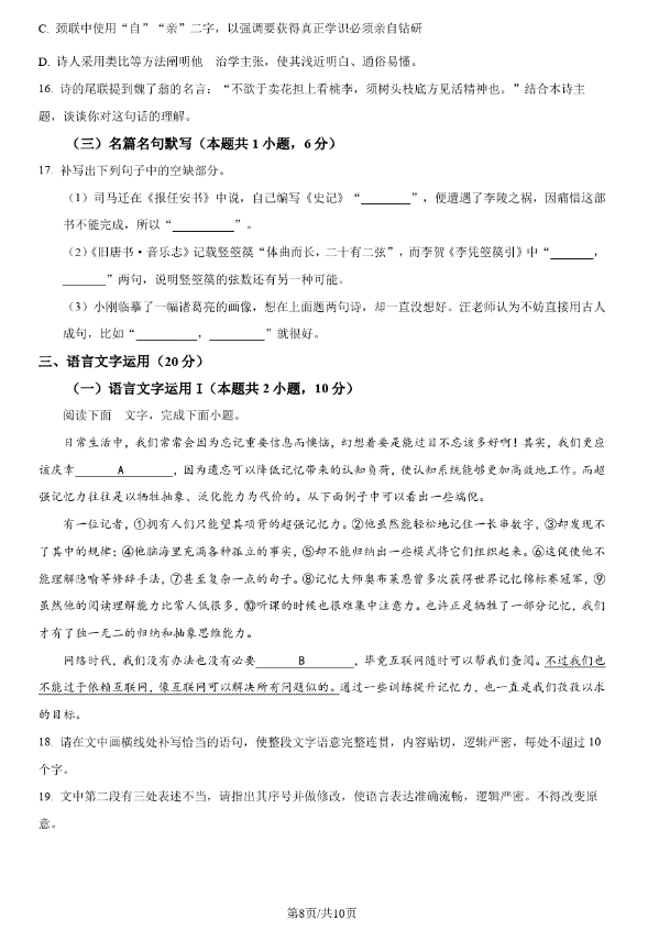 二、2024年湖南高考语文真题试卷