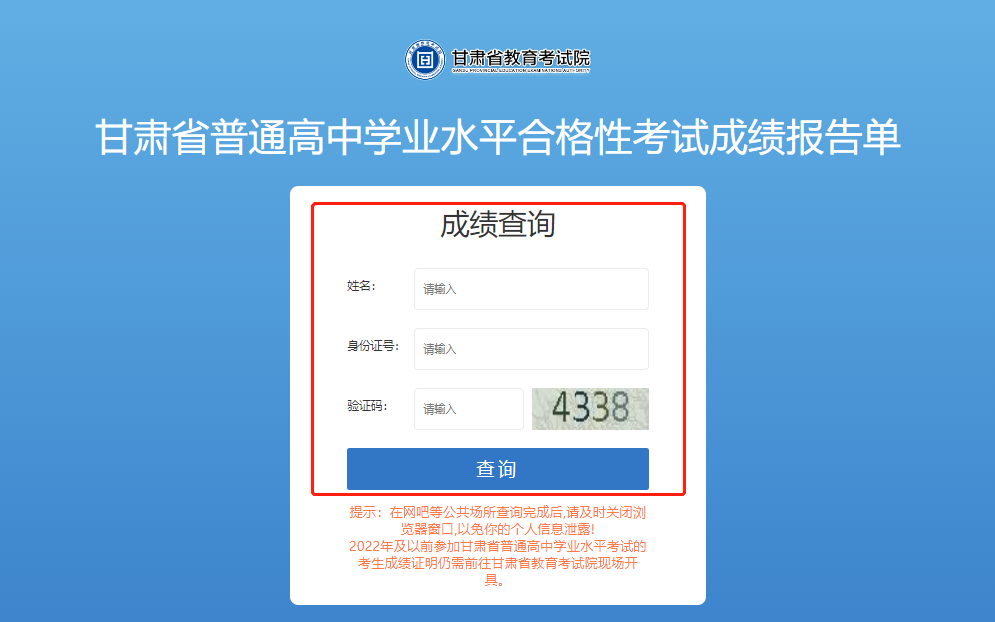 2023年冬季甘肃省普通高中学业水平合格性考试成绩查询入口: