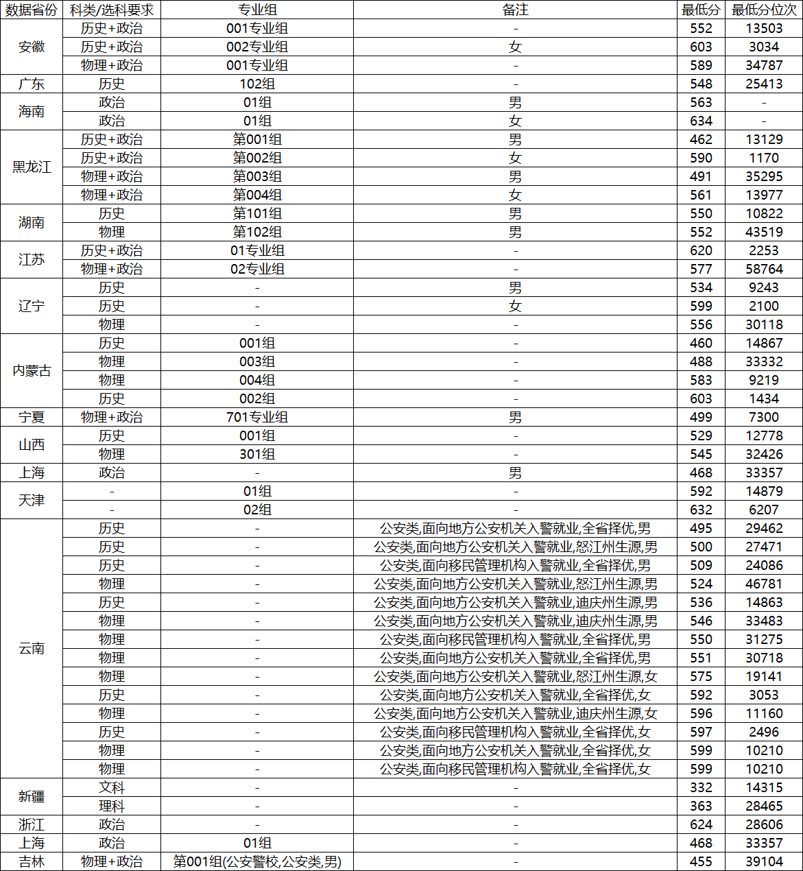 特别说明:禁毒学专业设有面向移民管理机构入警就业的专项计划,考生毕业后定向到移民管理机构就业。