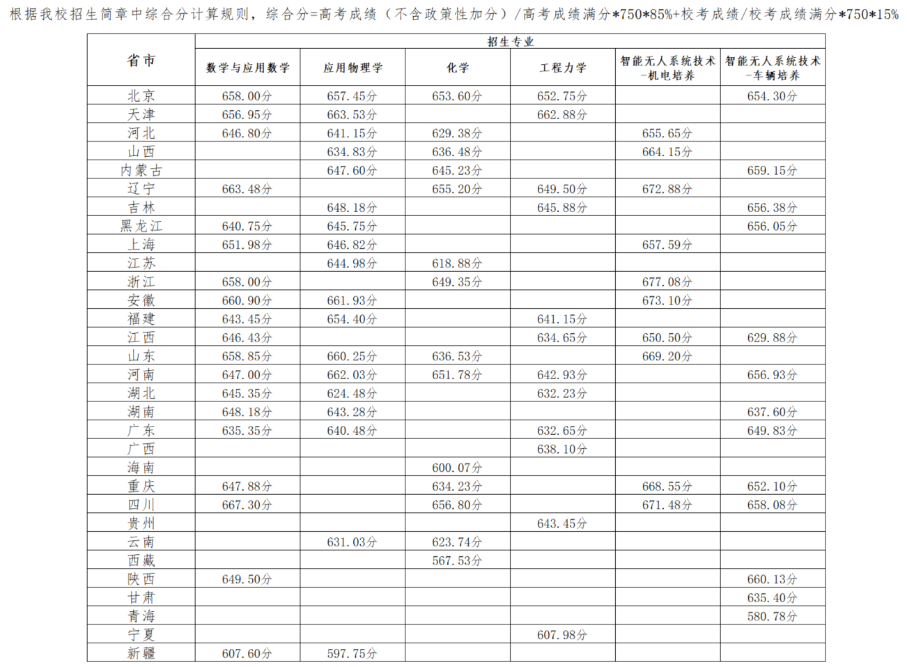| 省份 | 专业 | 科类 | 综合成绩最低分 |