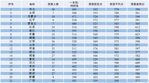 成绩要求:高考文化成绩在当地一本线以上(对于本科招生批次合并的省份,成绩不得低于特殊类型招生控制线)。