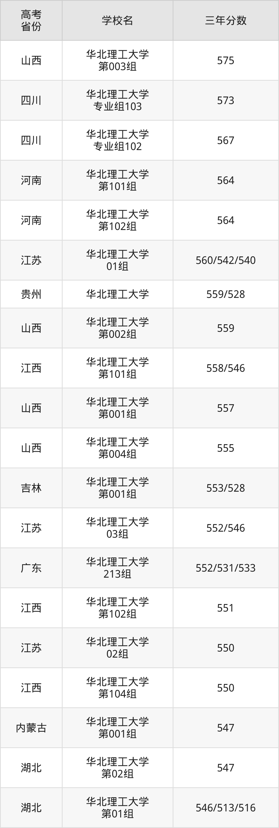 | 华北理工大学 (地方专项计划) | 548 | 523 | 465 |