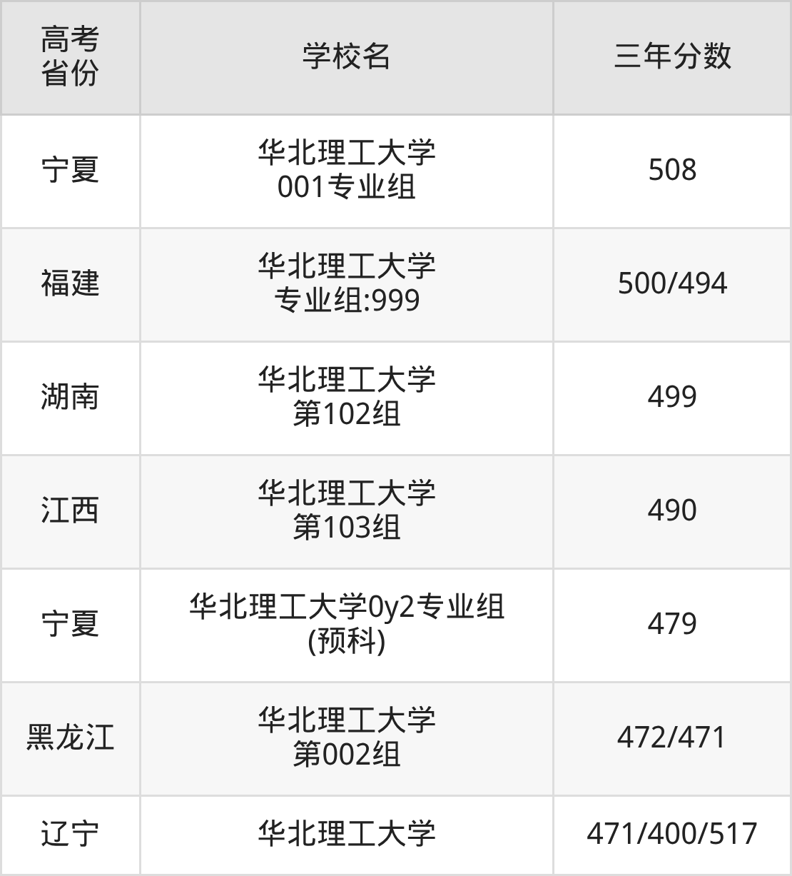 | 宁夏 | 华北理工大学0y1专业组 (预科) | 448 |