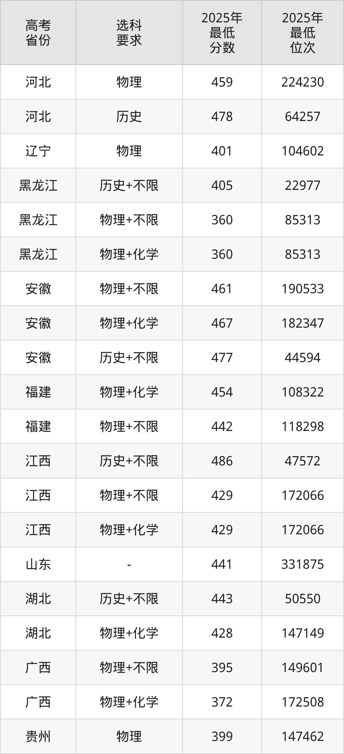 在2025年黑龙江高考物理类招生时,公办本科收分最低的是黑龙江建筑职业技术学院第004组(中外合作),最低分是180分、位次是117127位。再看黑龙江工程学院昆仑旅游学院,2025年在黑龙江物理类的最低录取分数线是360分,最低位次是85313位。