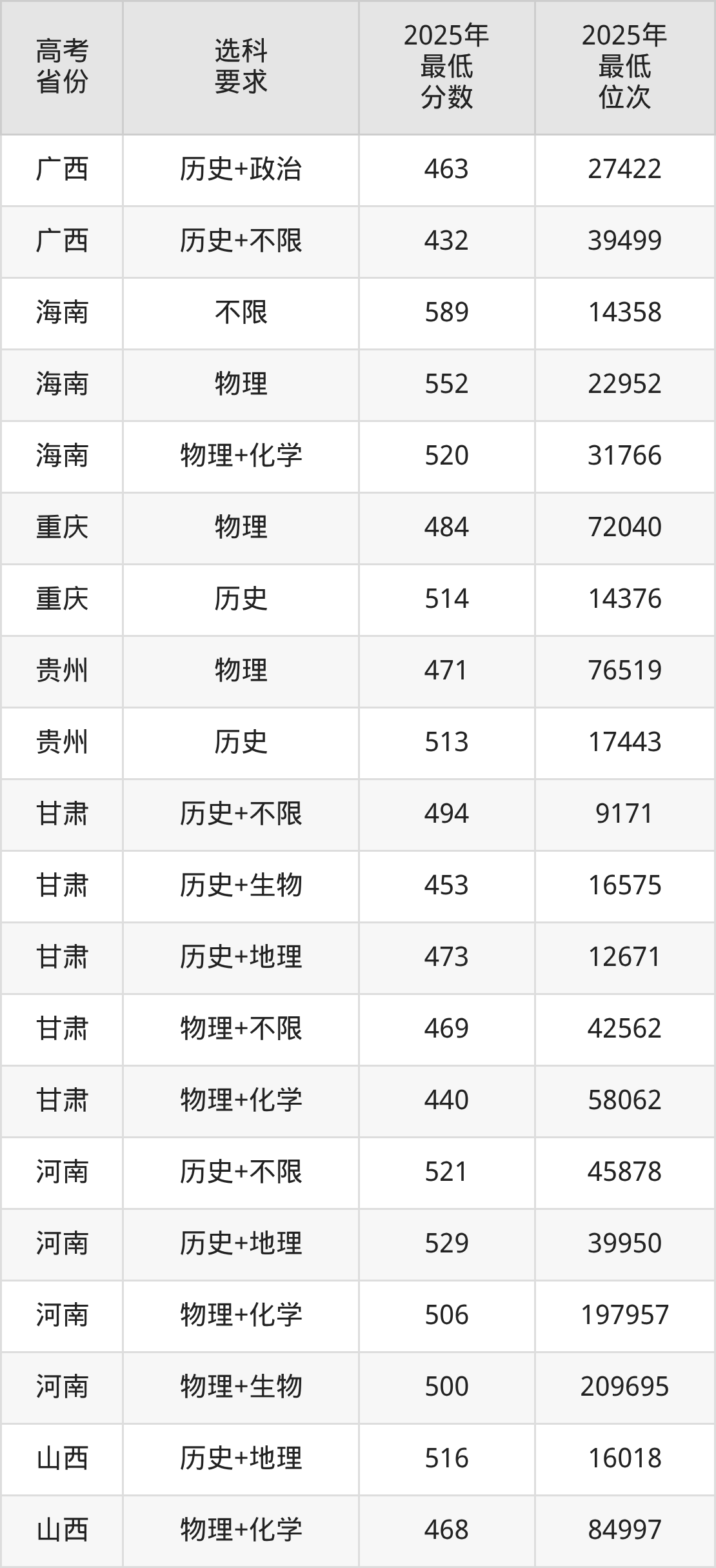 在2025年新疆高考理科招生时,211收分最低的是四川农业大学,最低分是421分、位次是18415位。再看商洛学院,2025年在新疆理科的最低录取分数线是338分,最低位次是33253位。