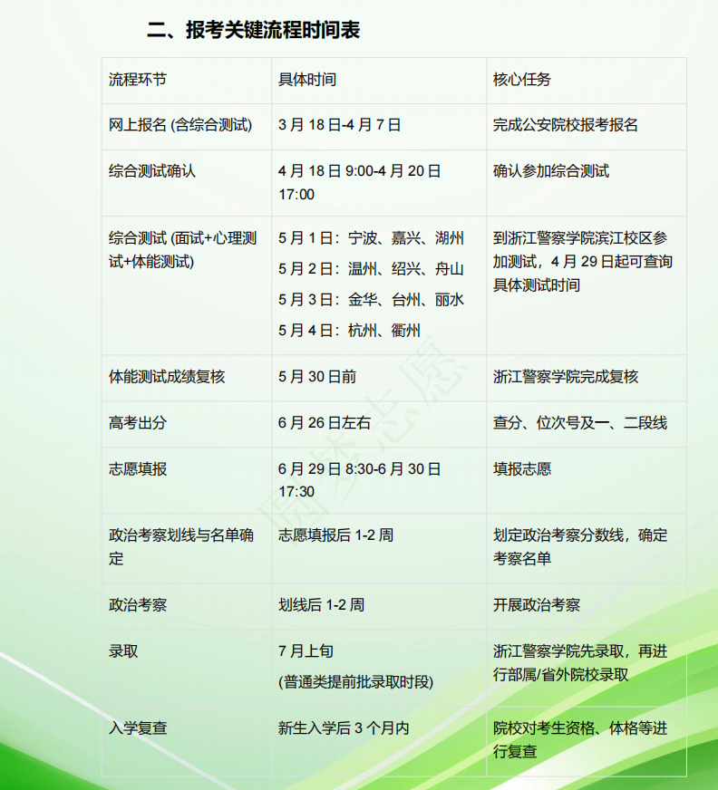 一、浙江警校提前批报考时间流程图