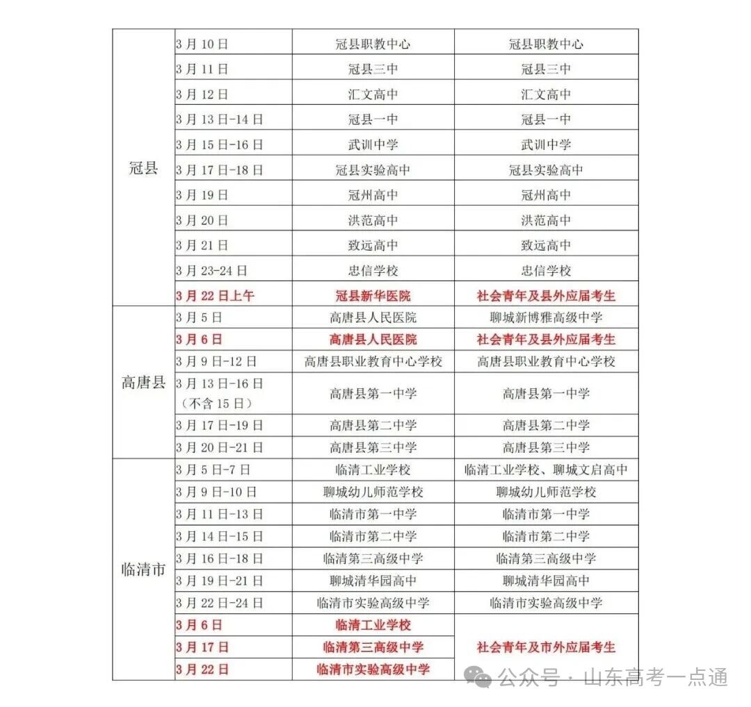 聊城市:全市安排已公布(东昌府区3月5日-27日、冠县3月10日-24日、高唐县3月5日-21日等)