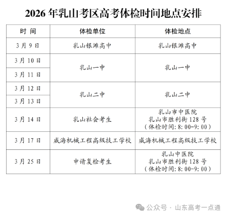 二、2026山东高考体检各地市具体安排