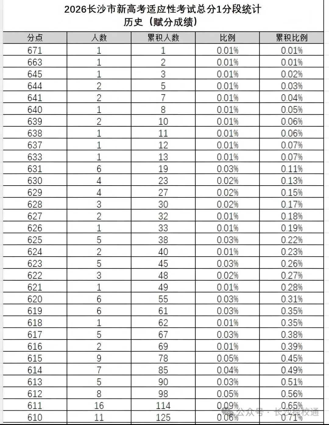 三、2026年长沙一模一分一段表