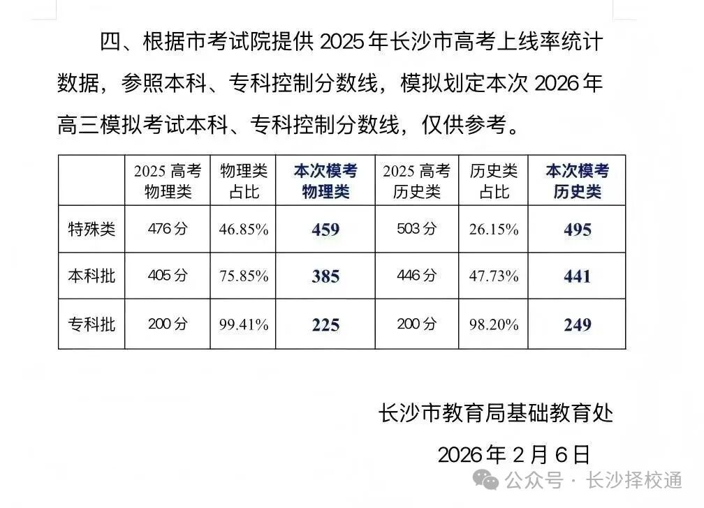 2026年长沙一模分数线已公布。数据显示,本次考试参考人数约6.6万人,其中物理类特控线459分、本科线385分,历史类特控线495分、本科线441分。同时,本文还同步整理了2026年长沙一模一分一段表相关情况,为考生和家长提供更直观的成绩定位参考。