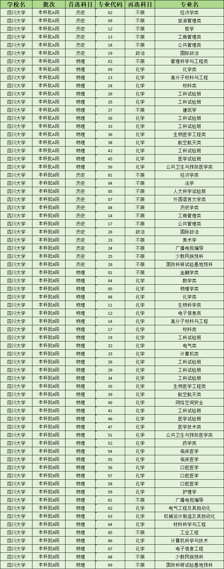 | 2025 | 本科批A段 | 0052 | 四川大学 |