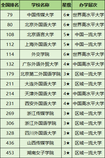全国语言类大学全部排名一览表汇总