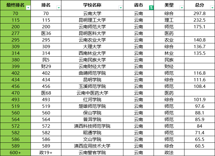 根据软科2024年中国大学排名,圆梦小编整理出了位于云南省的全部大学排名。