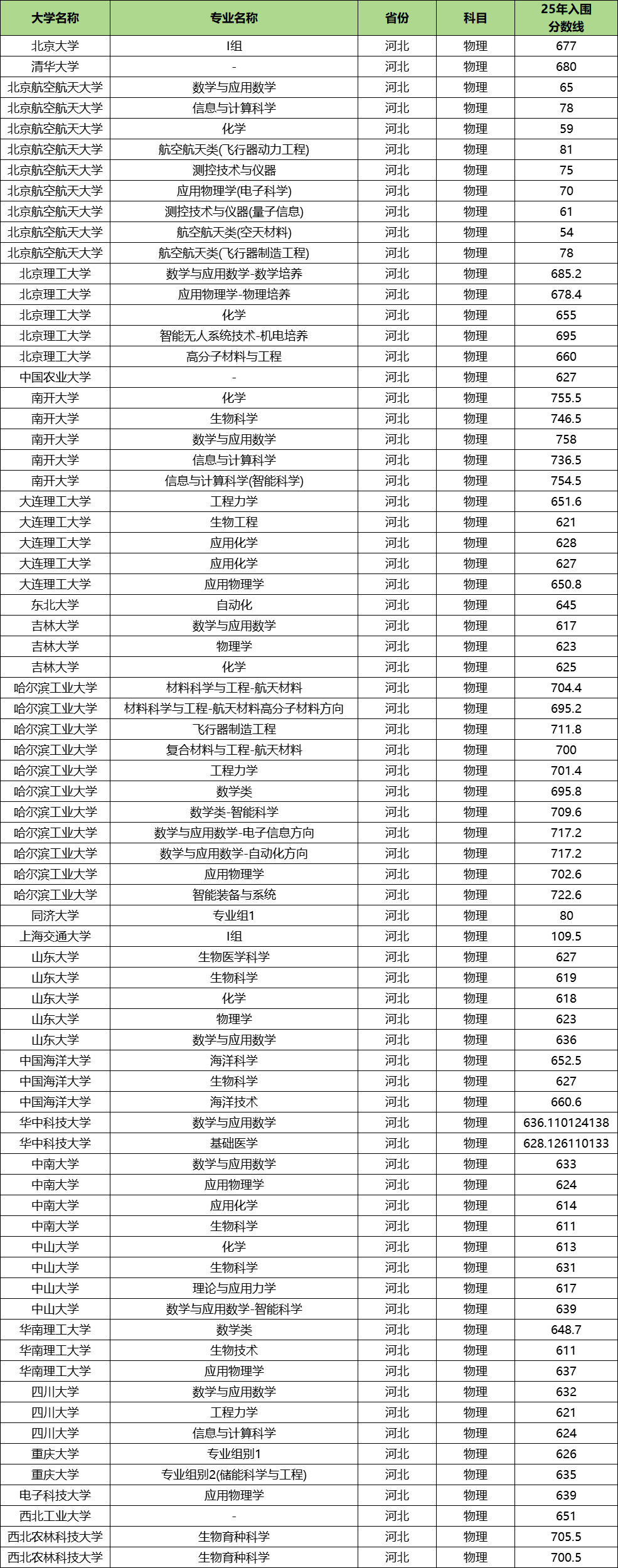 本文将为2026年河北高考生展示:强基计划各个大学2025年在河北省物理类、历史类的入围分数线。各位河北考生可以看看自己目前的成绩,是否可以通过报考强基计划,提前被985名校录取!