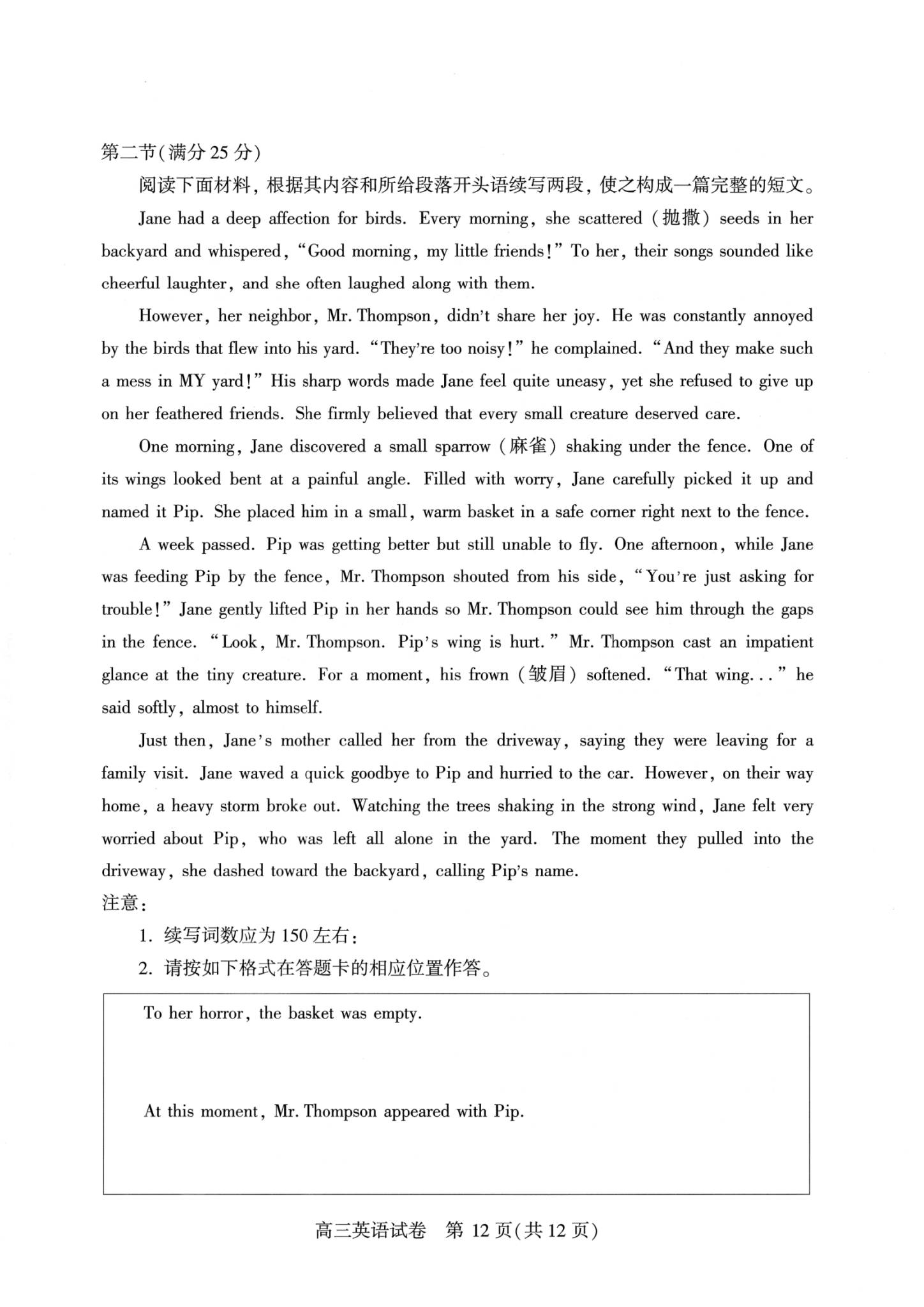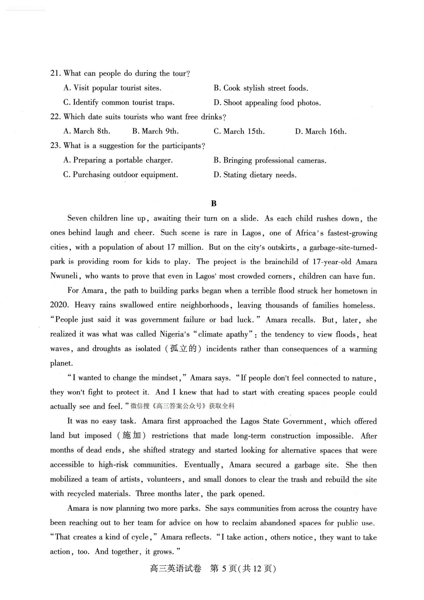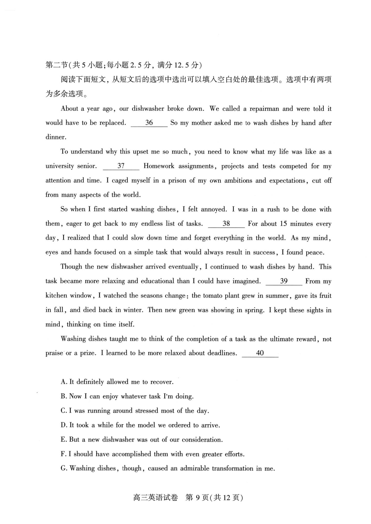 五、2026武汉高三二调英语试卷及答案