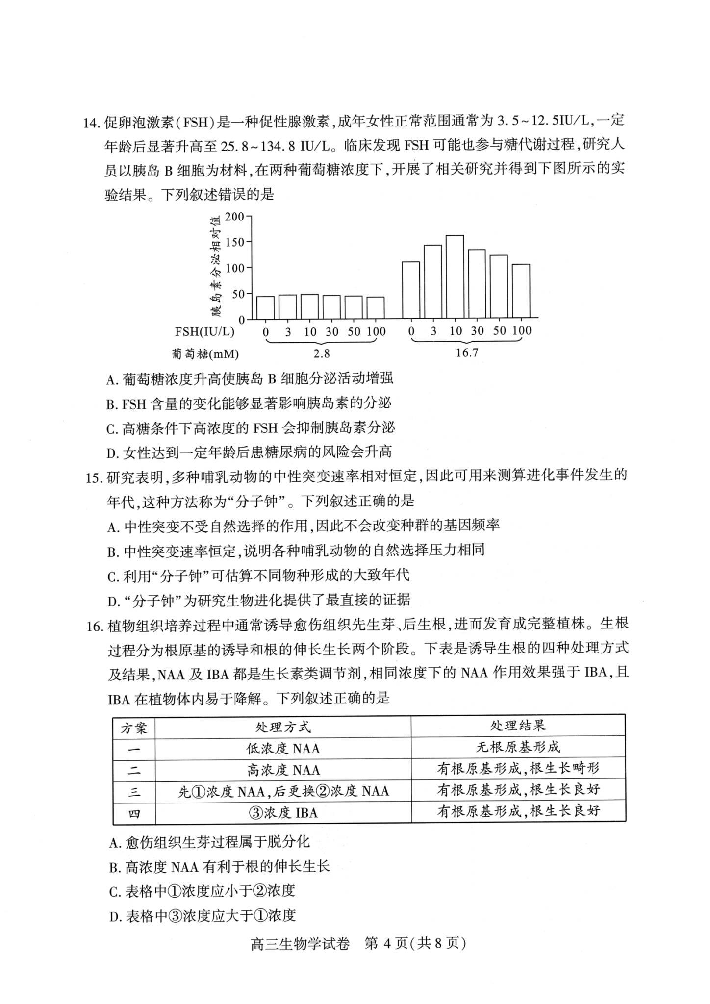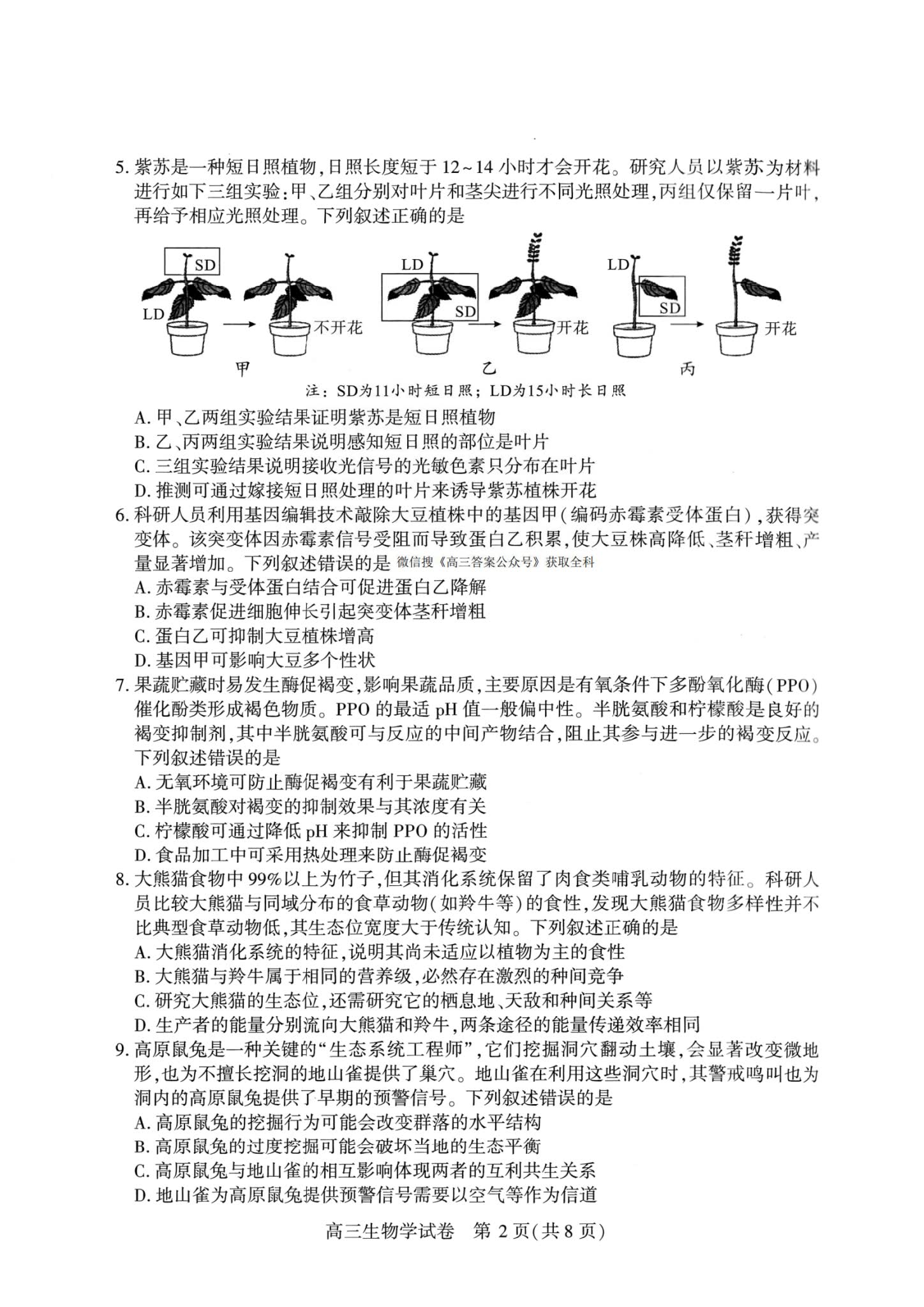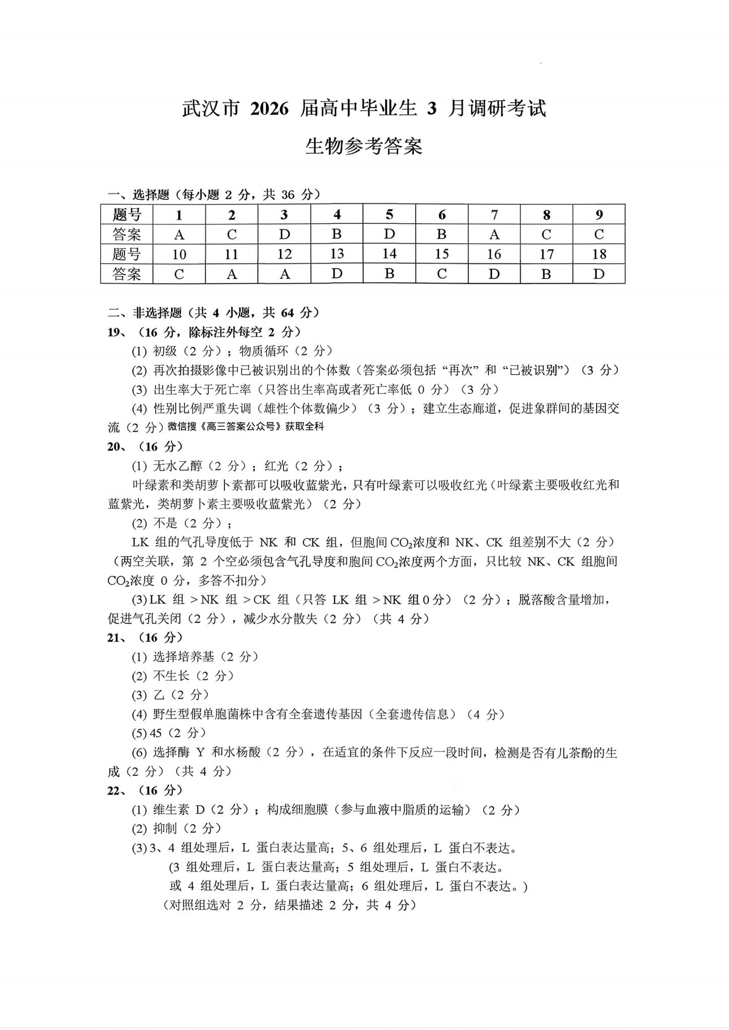 九、2026武汉高三二调生物试卷及答案