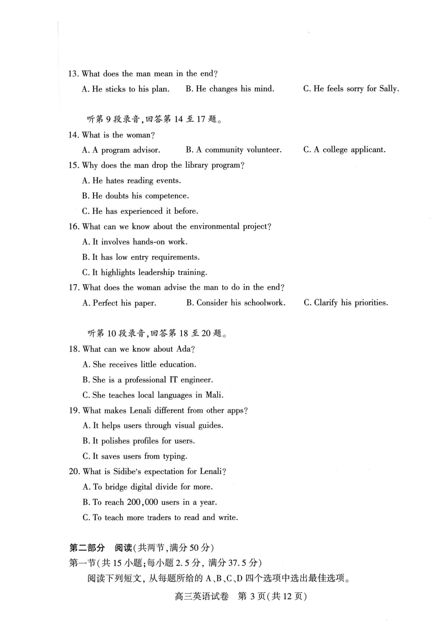试卷答案:本堂科目考试结束后,我们将第一时间更新语文试卷真题及详细答案解析。届时考生可核对答案,预估考试成绩,明确后续备考方向。