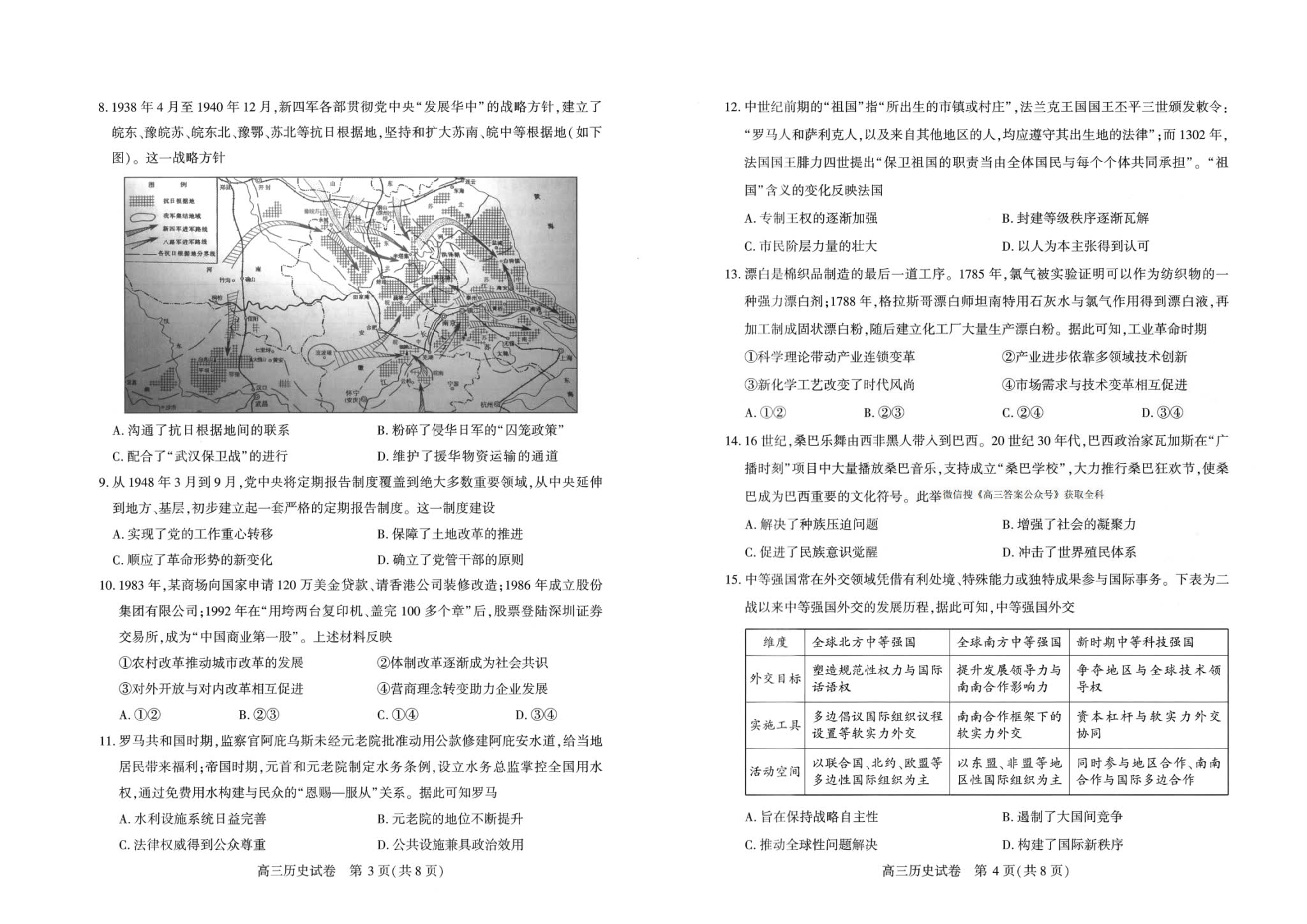 四、2026武汉高三二调历史试卷及答案