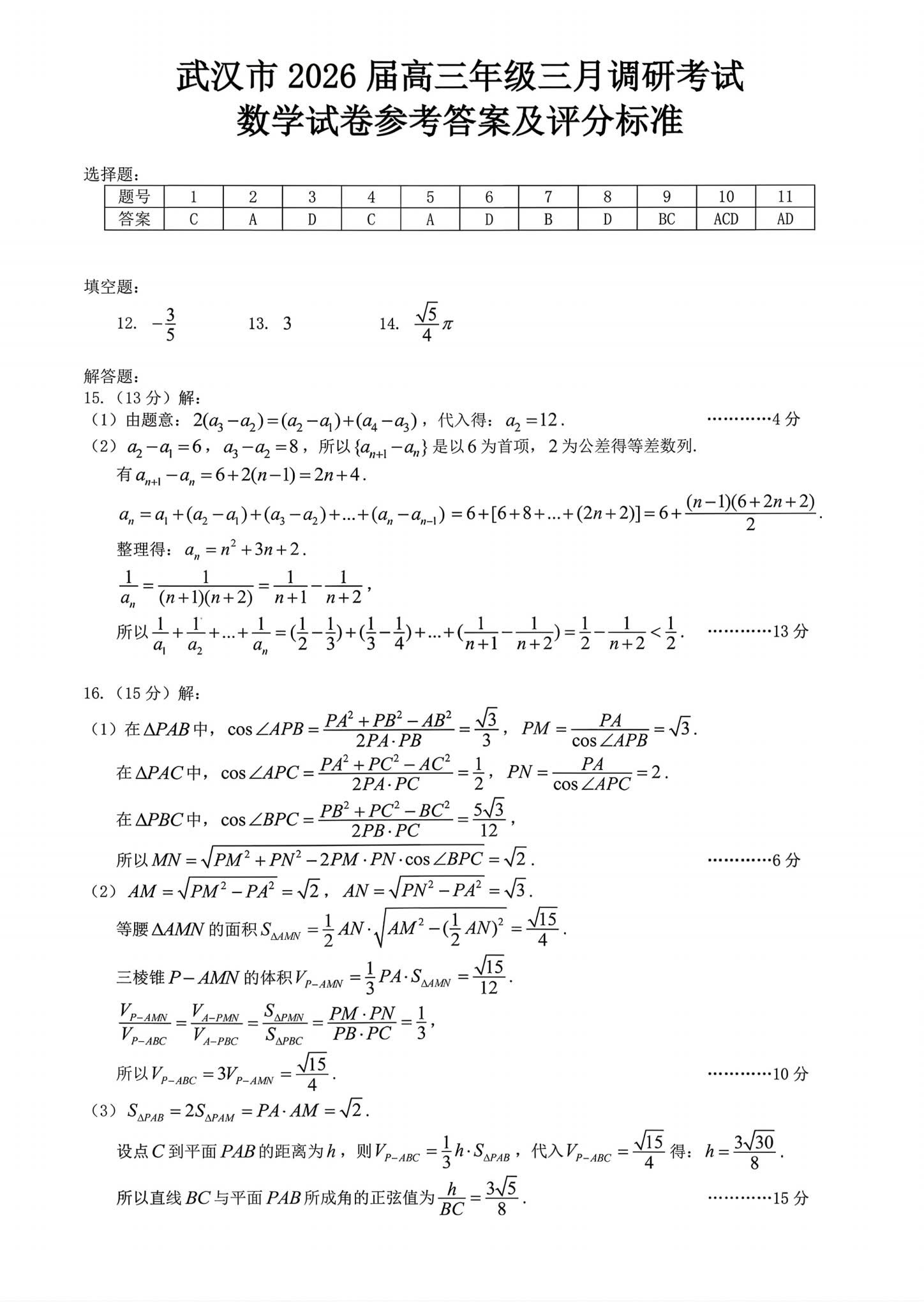 二、2026武汉高三二调数学试卷及答案