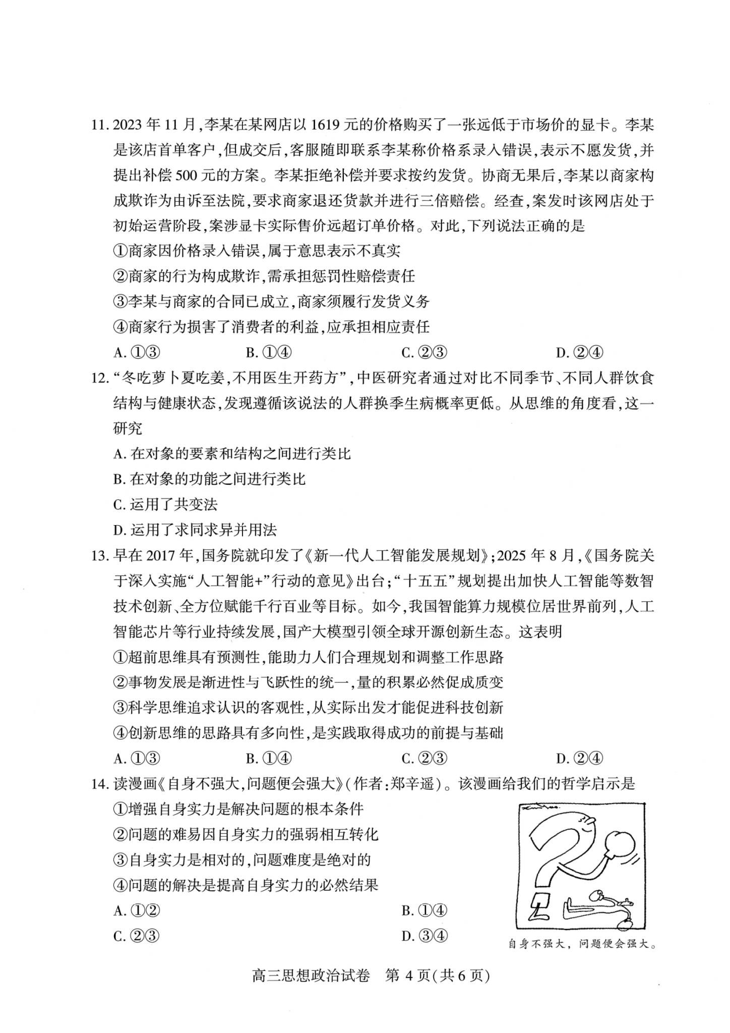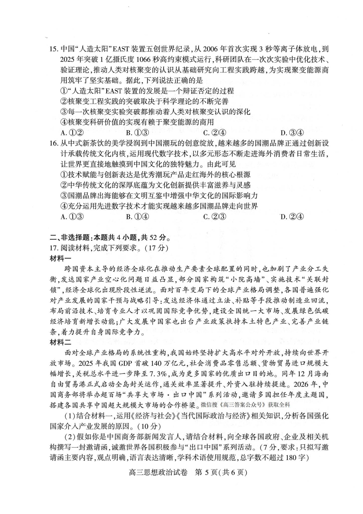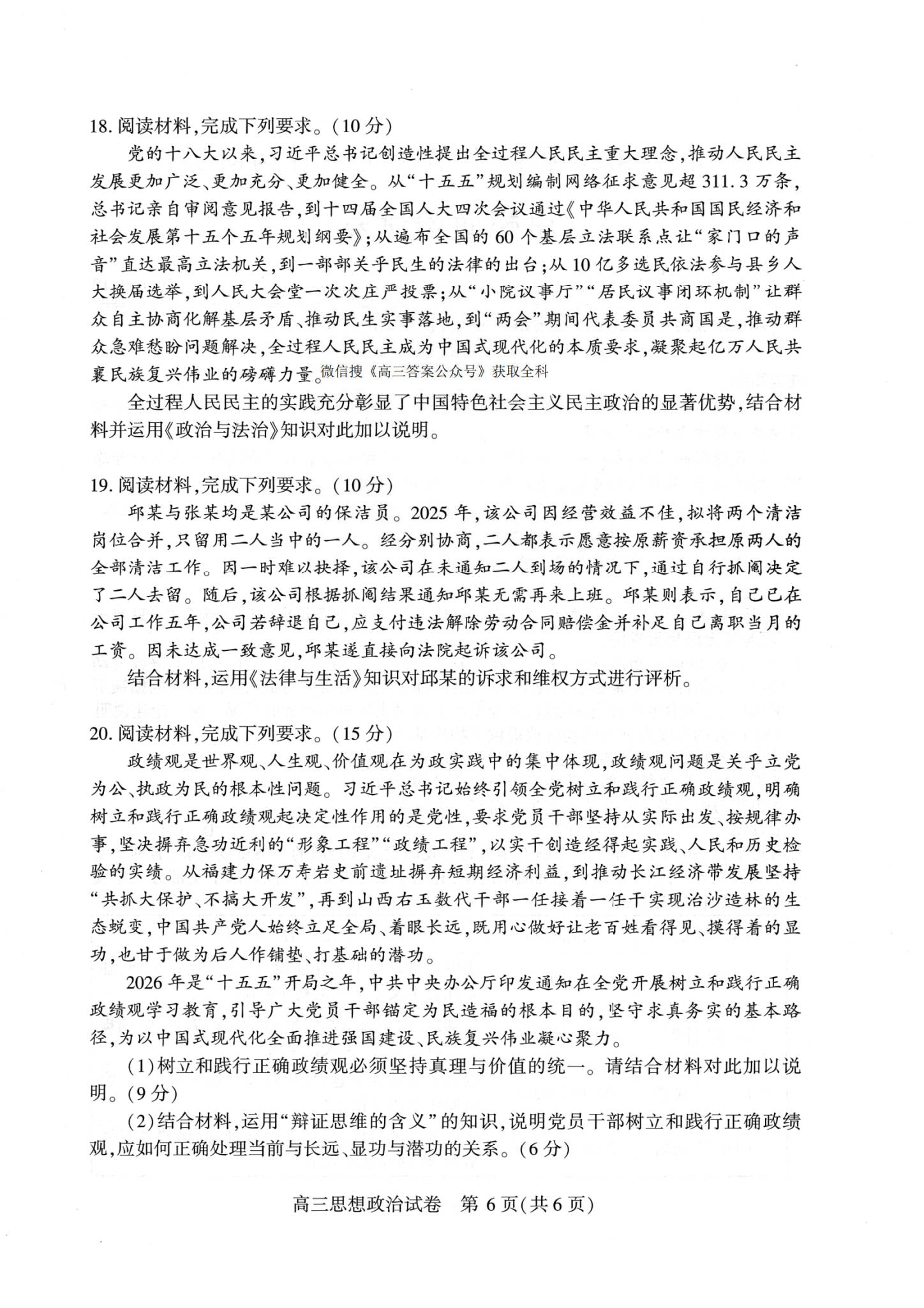 八、2026武汉高三二调政治试卷及答案