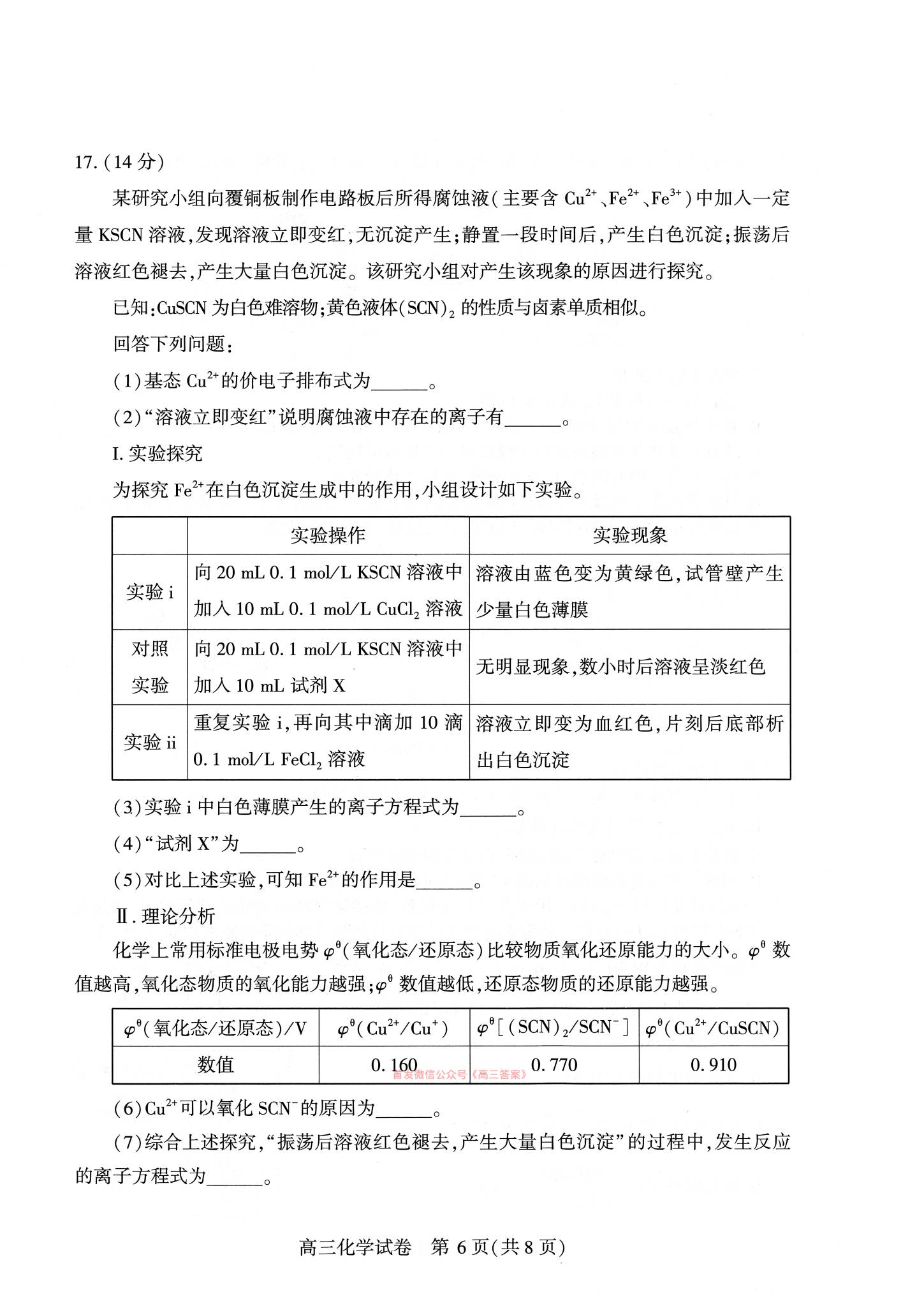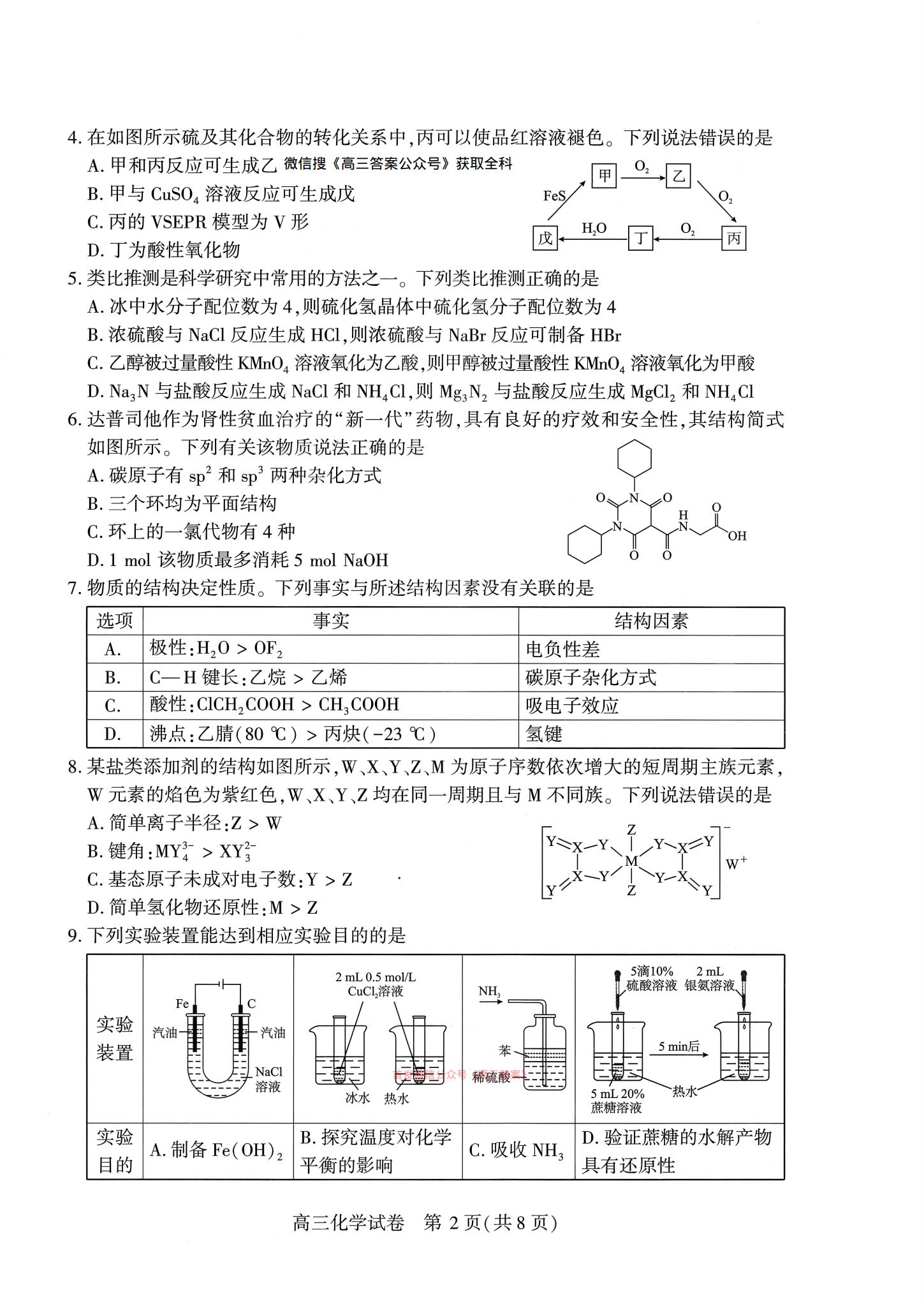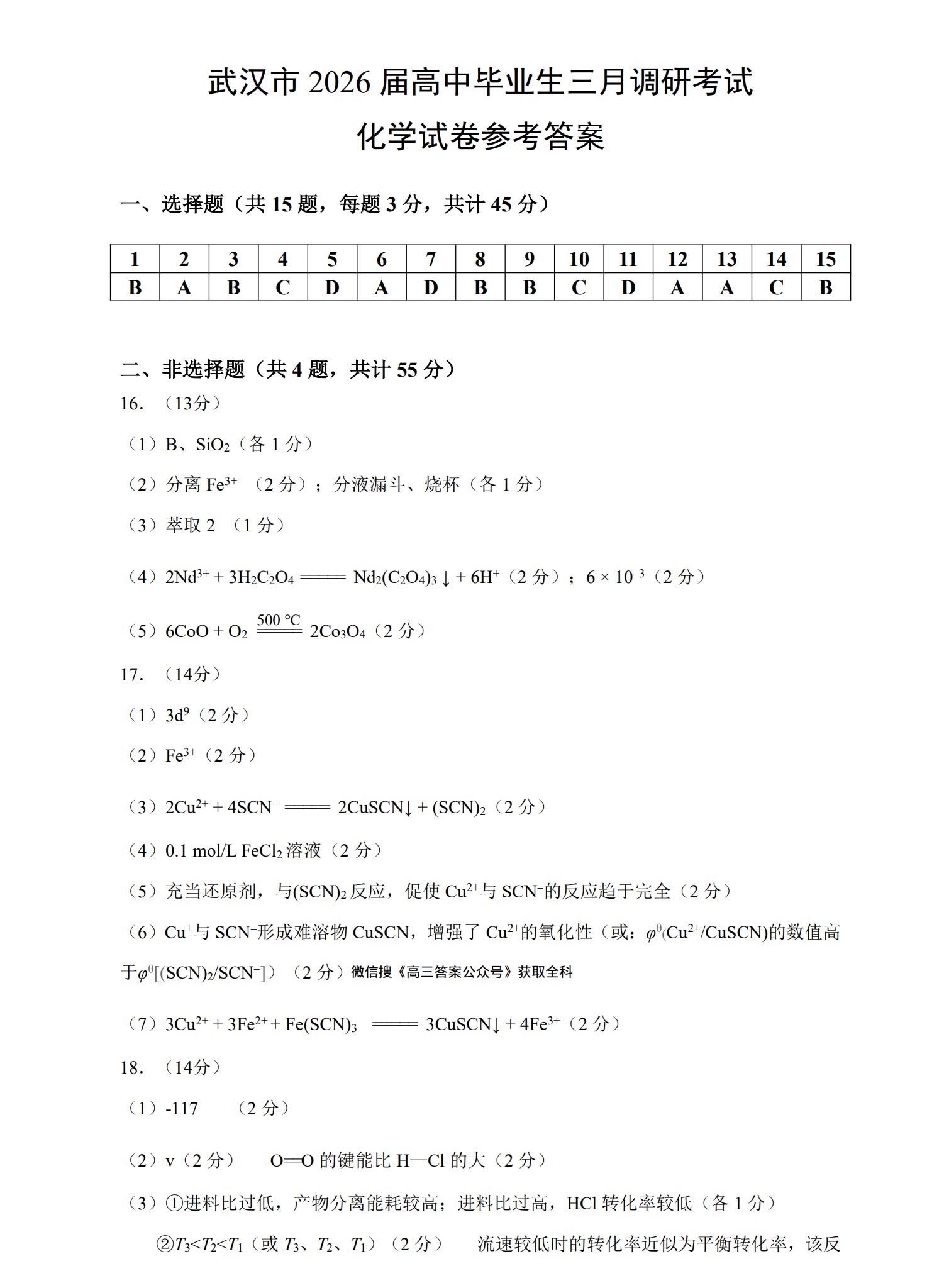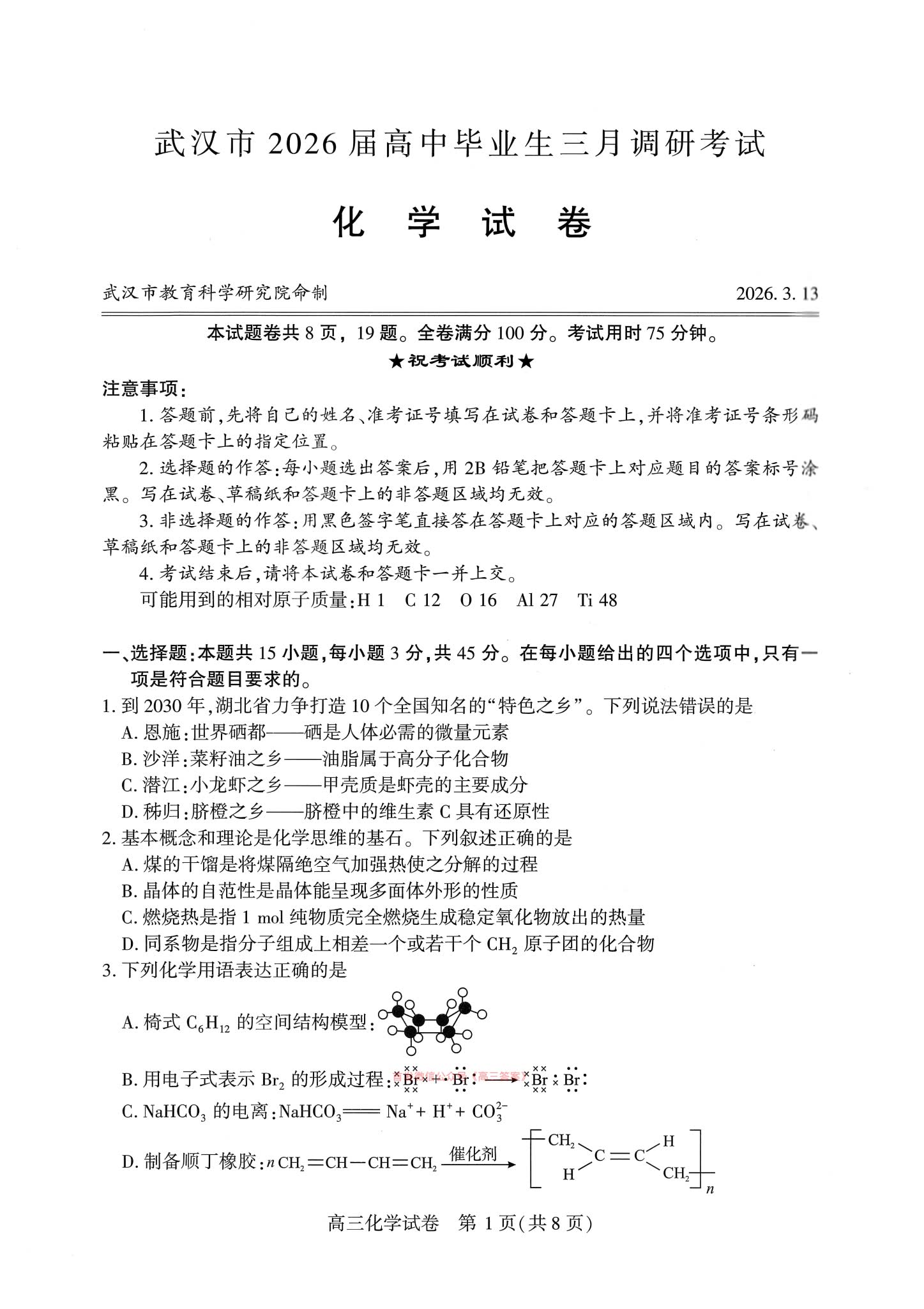 六、2026武汉高三二调化学试卷及答案