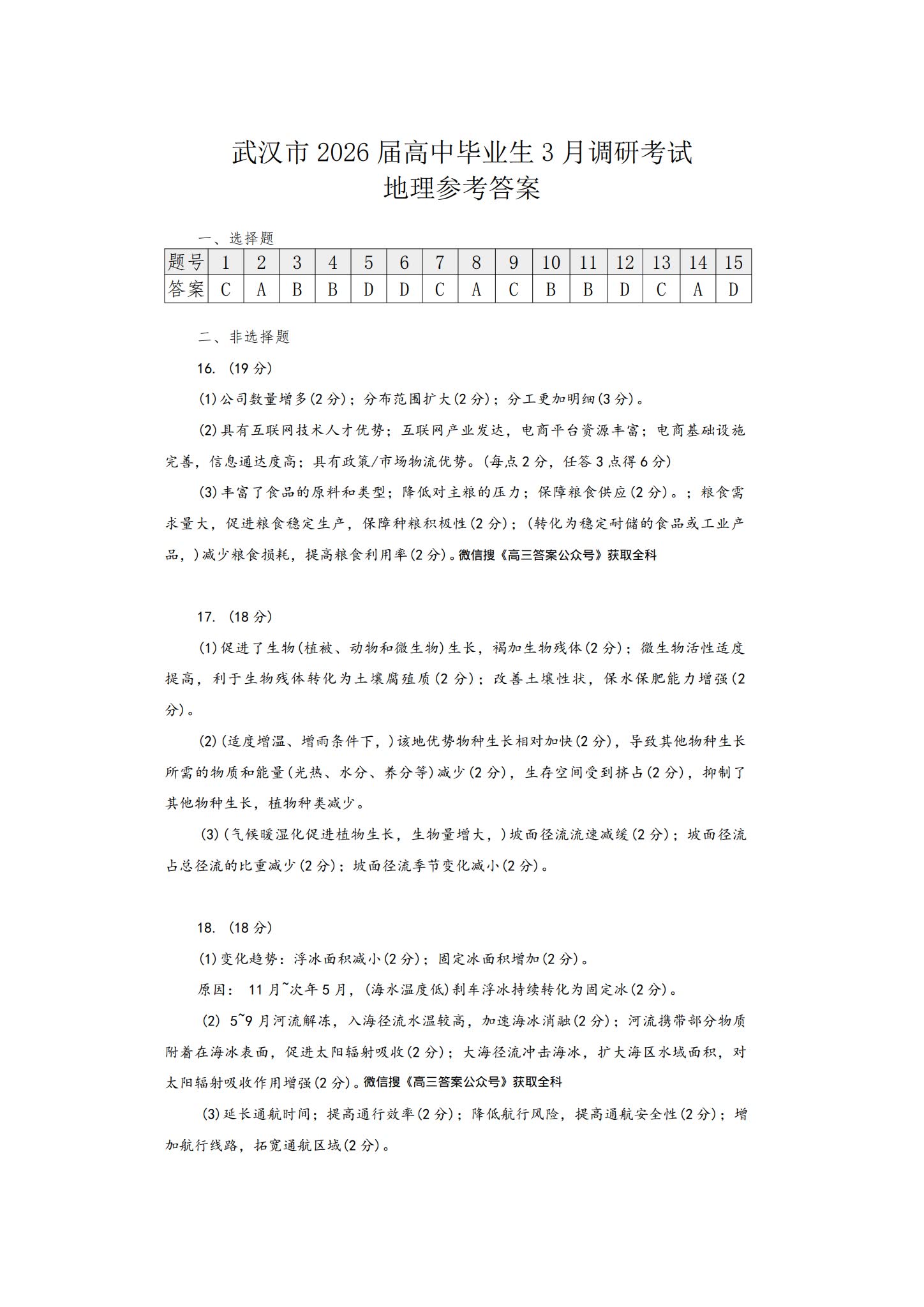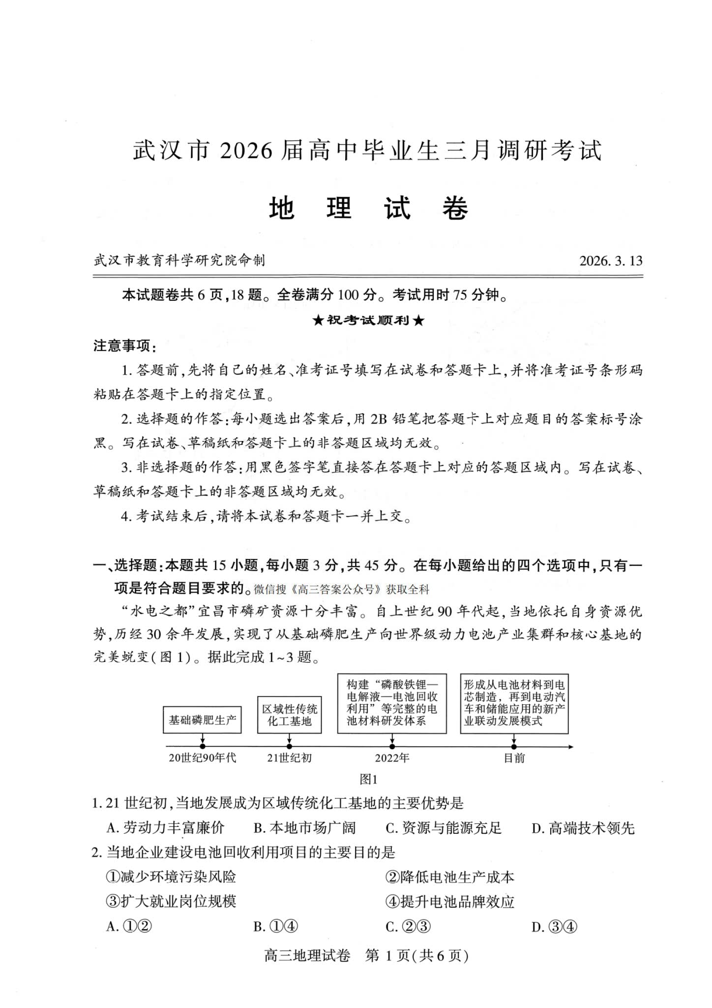 七、2026武汉高三二调地理试卷及答案