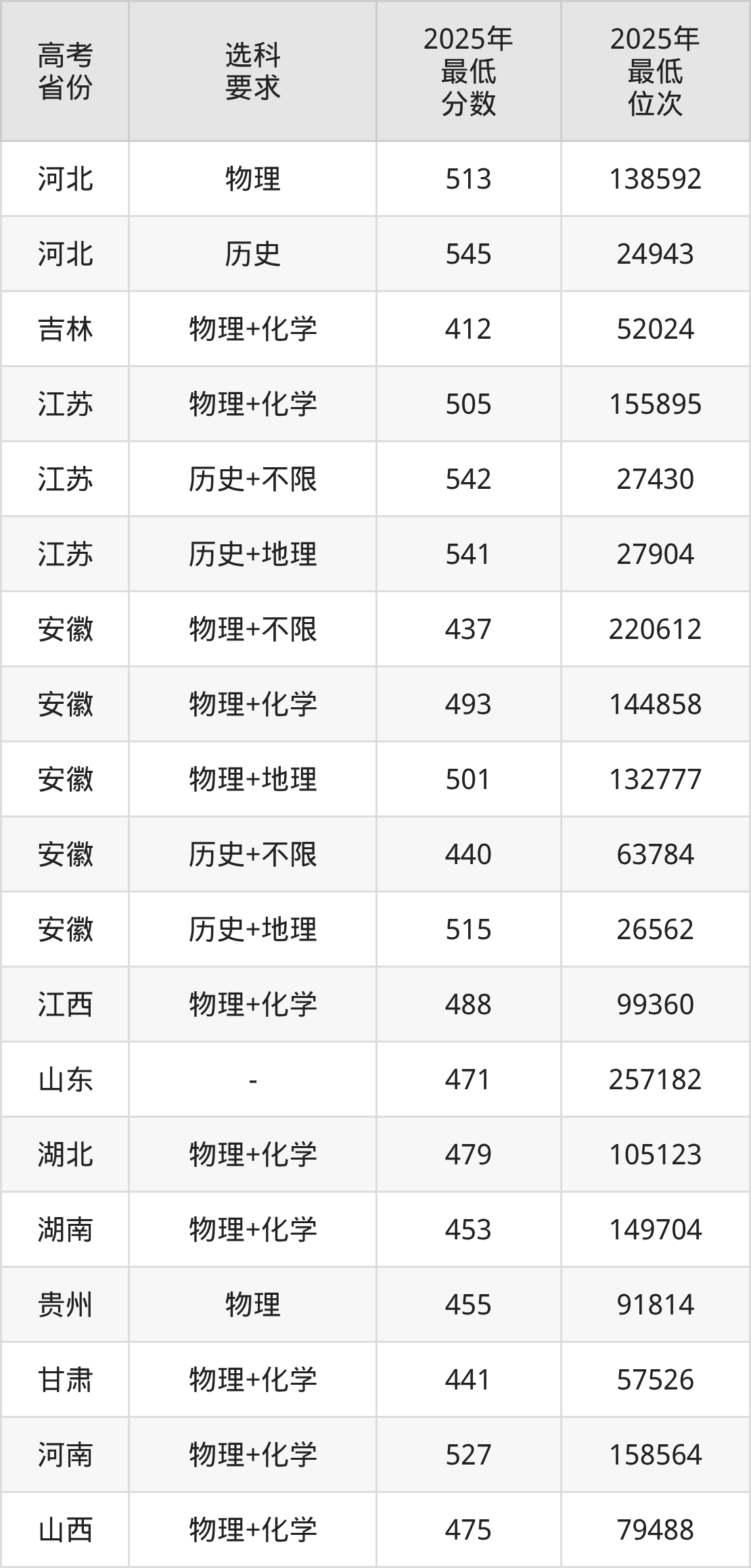 在2025年安徽高考物理类招生时,211收分最低的是贵州大学051组(中外合作办学),最低分是515分、位次是113446位。再看宿州学院,2025年在安徽物理类的最低录取分数线是437分,最低位次是220612位。