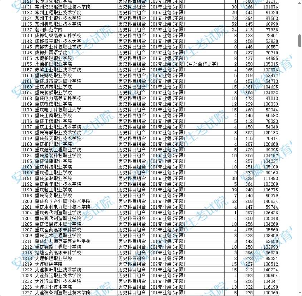 江苏省院校中,南京铁道职业技术学院(001组)分数高达492分,位次145643,成为省外院校中的“最高分”,其铁道运营、车辆技术等专业就业前景广阔;南京信息职业技术学院(003组)分数485分,位次157012,聚焦电子信息、人工智能等热门领域。