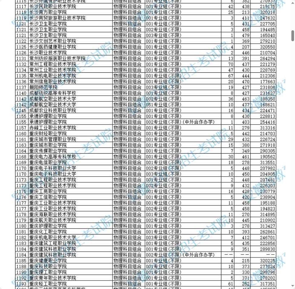 此外,长沙航空职业技术学院(002组)分数474分,位次172758,重庆电力高等专科学校(001组)分数461分,位次190562,均因专业对口性强、就业率高而备受关注。