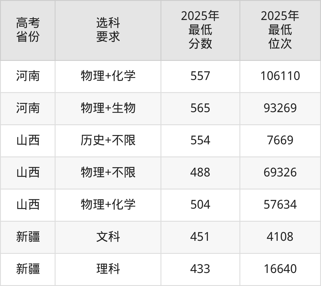 在2025年湖南高考物理类招生时,211收分最低的是海南大学第218组(中外合作办学或国际项目),最低分是462分、位次是137709位。再看中南林业科技大学,2025年在湖南物理类的最低录取分数线是471分,最低位次是125833位。