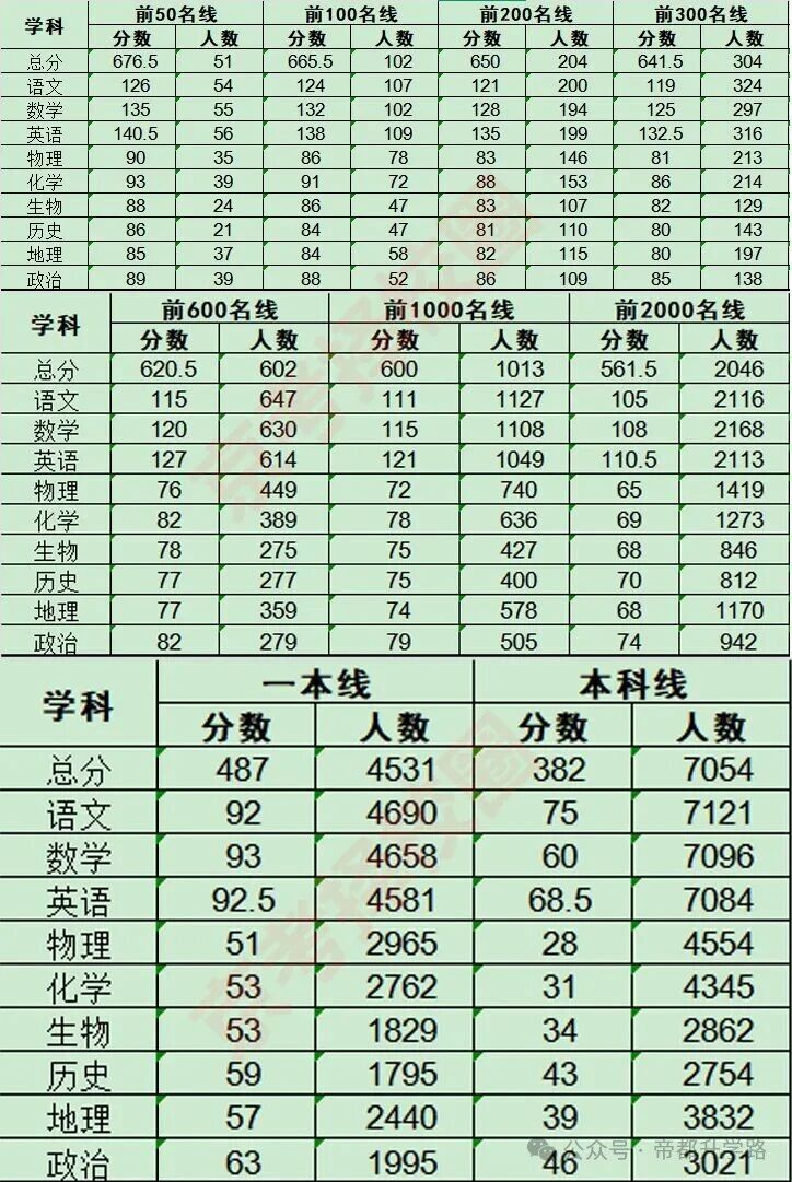 前50名线:总分需达到676.5分(实际51人)。