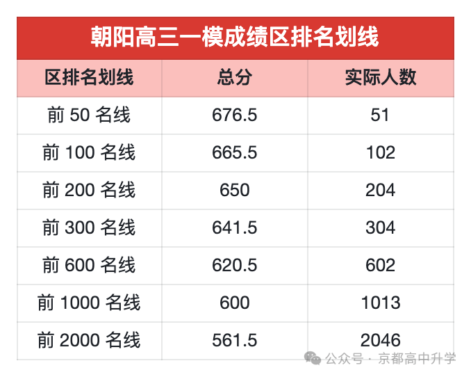 1. 朝阳区高三一模分数线