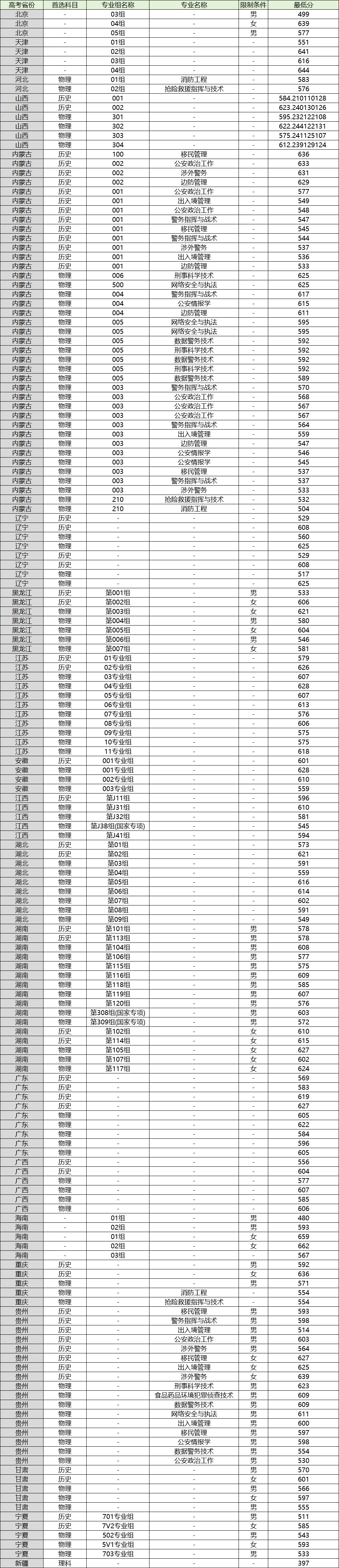 一、2025年中国人民警察大学录取分数线一览表