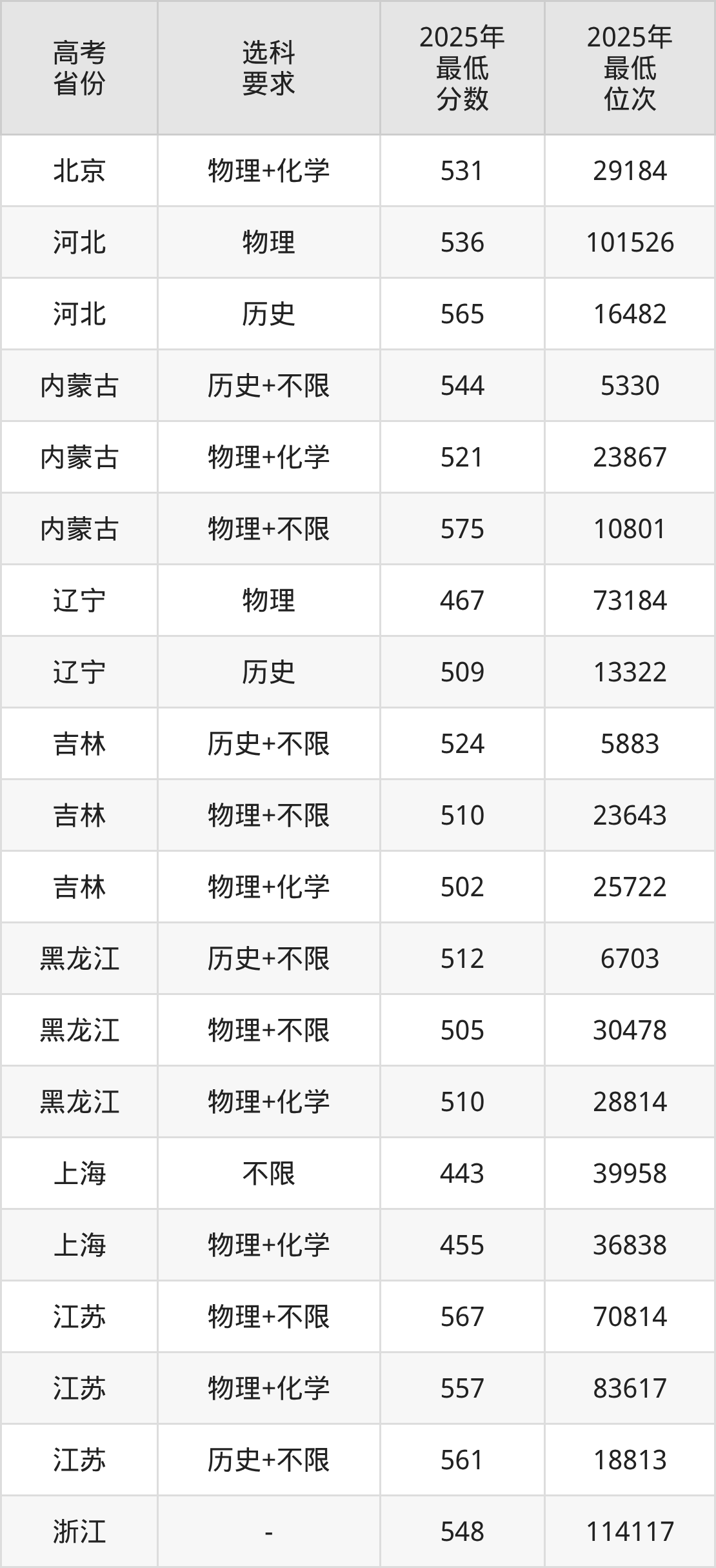 在2025年辽宁高考物理类招生时,211收分最低的是西藏大学,最低分是460分、位次是76739位。再看大连交通大学,2025年在辽宁物理类的最低录取分数线是467分,最低位次是73184位。
