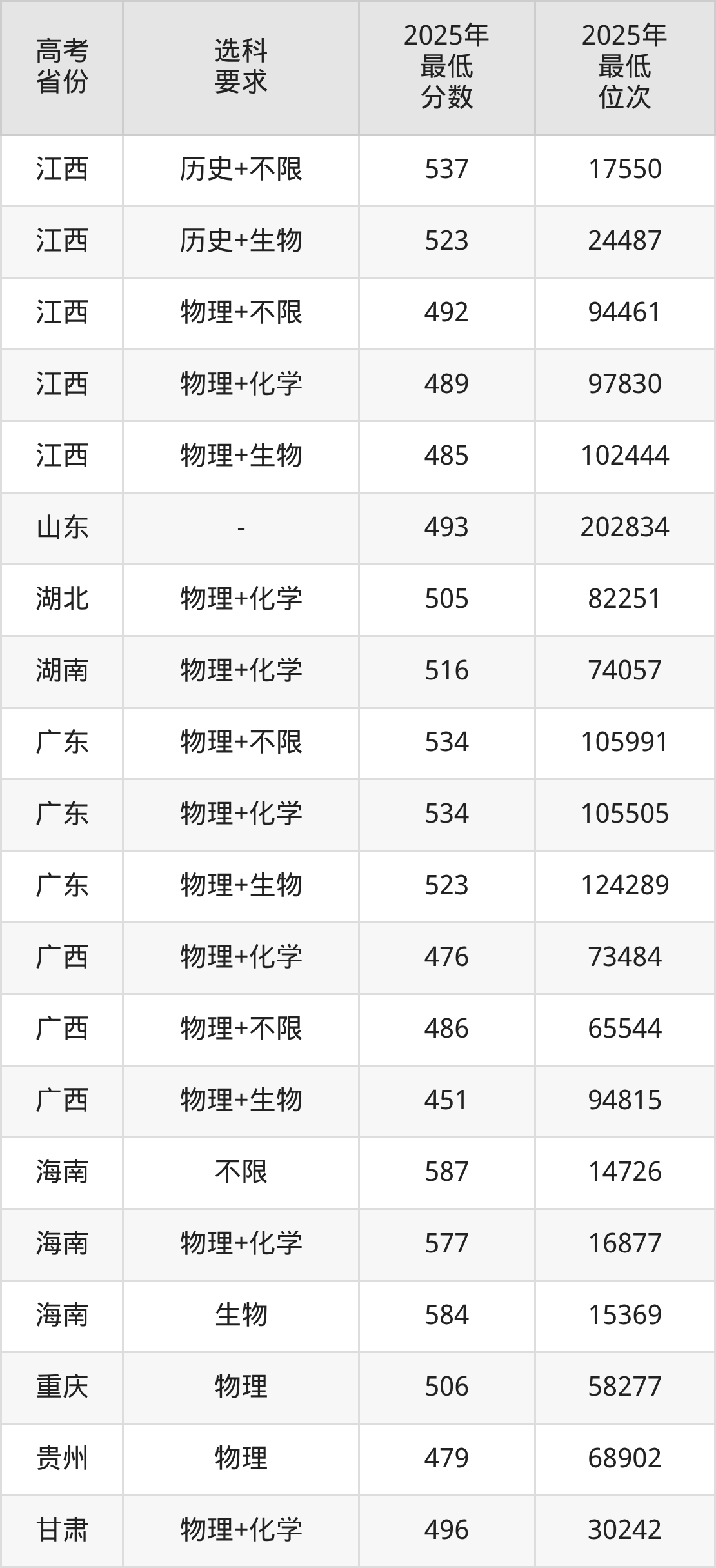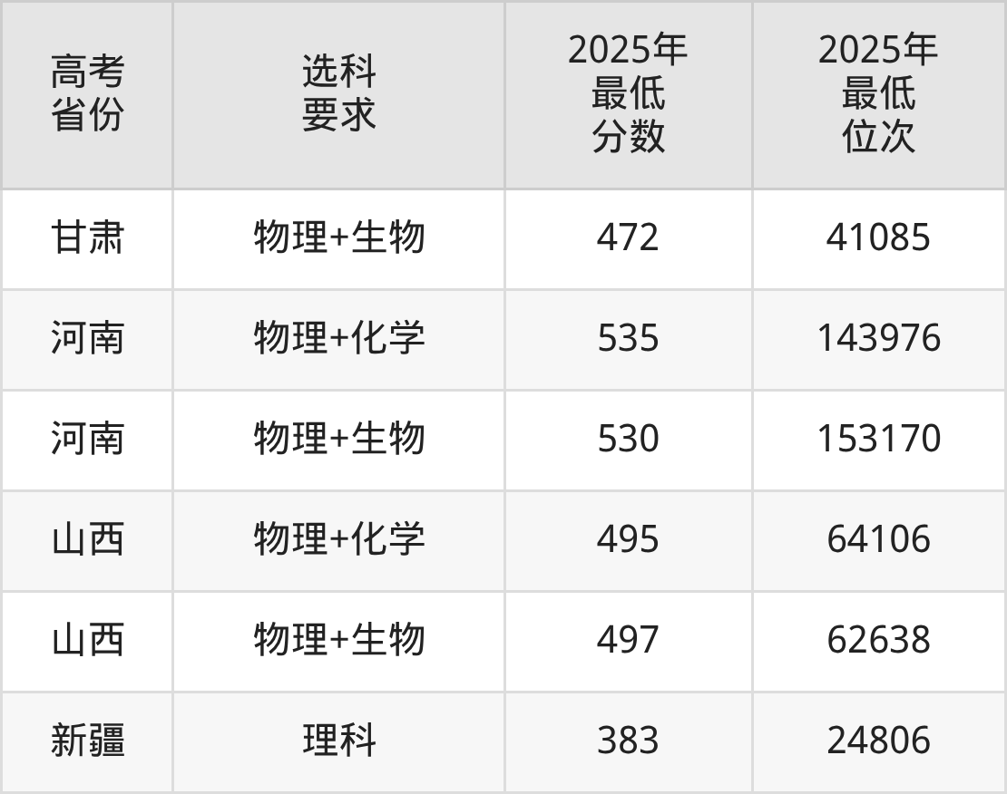 在2025年江西高考物理类招生时,211收分最低的是延边大学第503组,最低分是515分、位次是66039位。再看赣南医科大学,2025年在江西物理类的最低录取分数线是485分,最低位次是102444位。