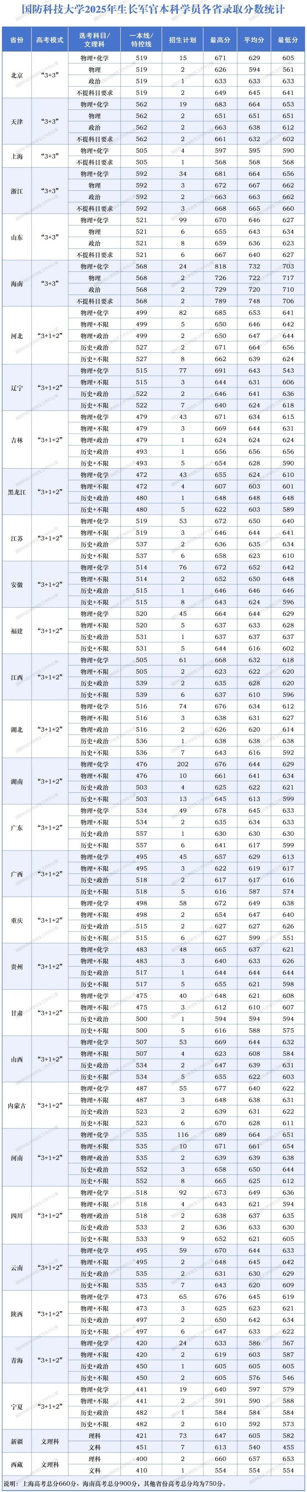 国防科大2025年在全国各省的录取分数线一览表具体如下:
