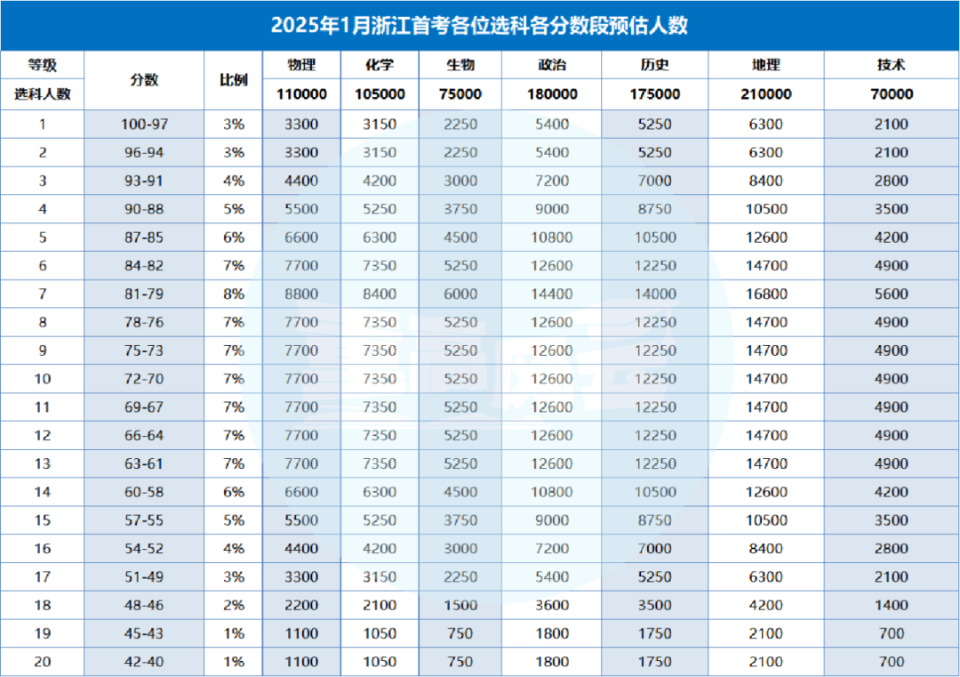 2026年浙江首考各科目赋分表还没有公布出来。但是,本文为大家整理了2025年浙江选考成绩的赋分表,可供参考。