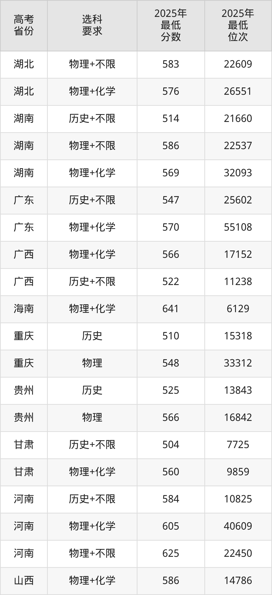 在2025年重庆高考物理类招生时,211收分最低的是四川农业大学,最低分是525分、位次是46560位。再看重庆邮电大学,2025年在重庆物理类的最低录取分数线是548分,最低位次是33312位。