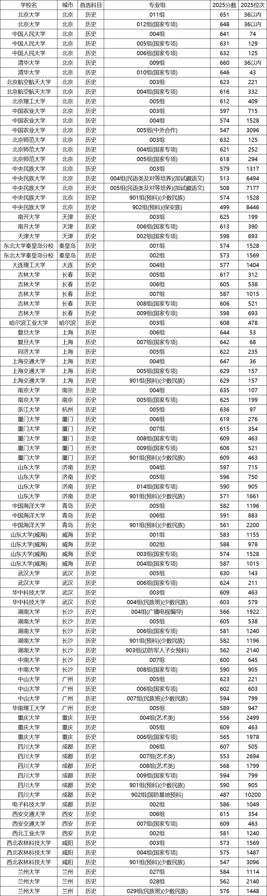 历史类考生:若目标为顶尖985,需630分以上;若分数在570分左右,仍有较多中段985可选;510分以上可关注民族类或预科计划。