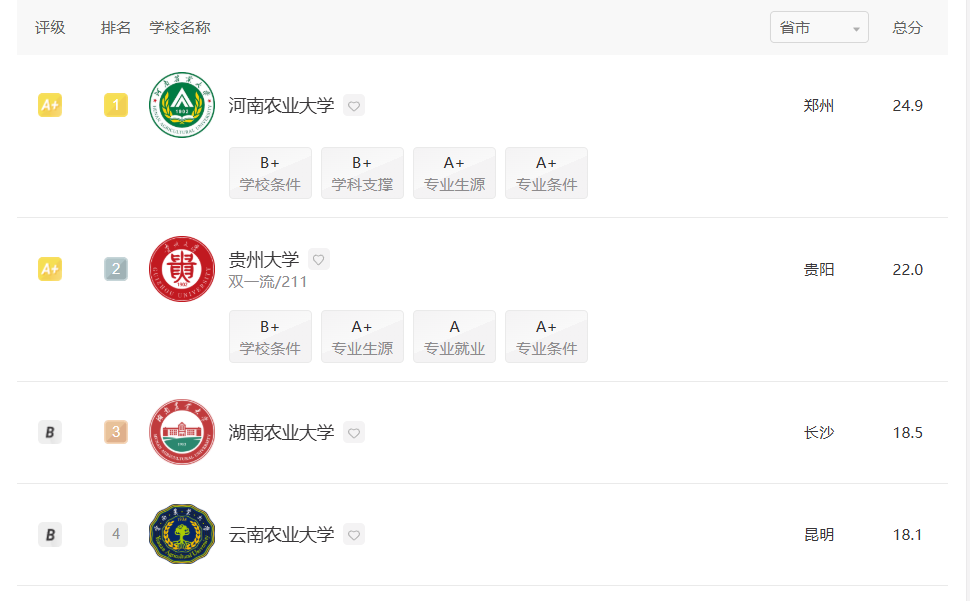 | 2 | 贵州大学 | A+ | 贵阳 |