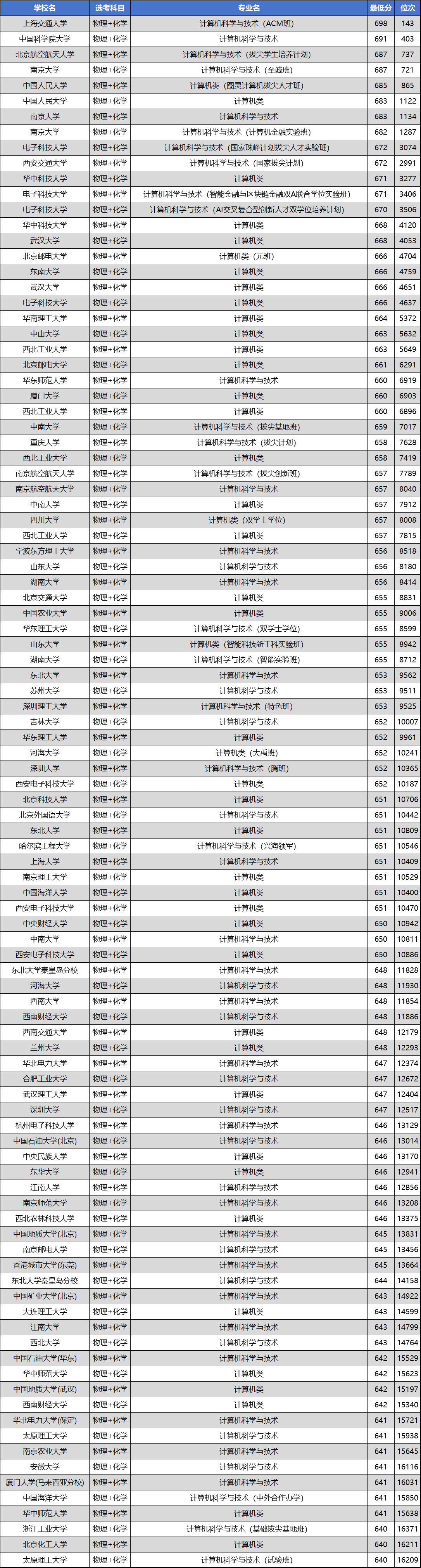 以下是2025计算机科学与技术专业前100强大学的录取分数线: