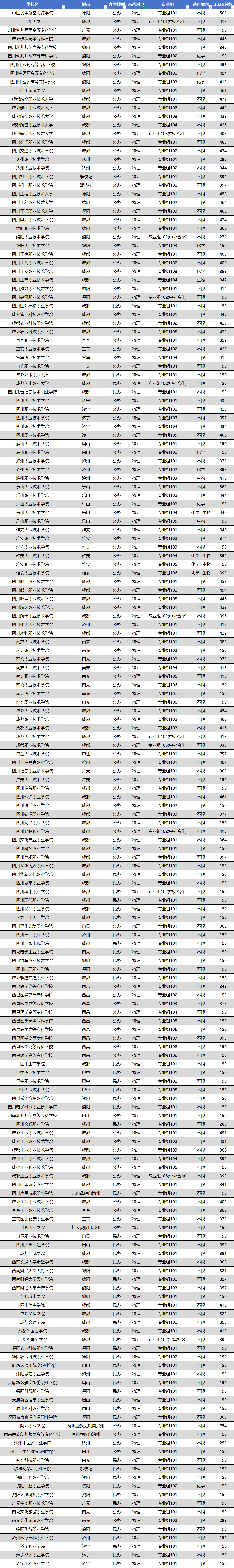 附:2025年四川省内大专院校录取分数线一览表(物理类)