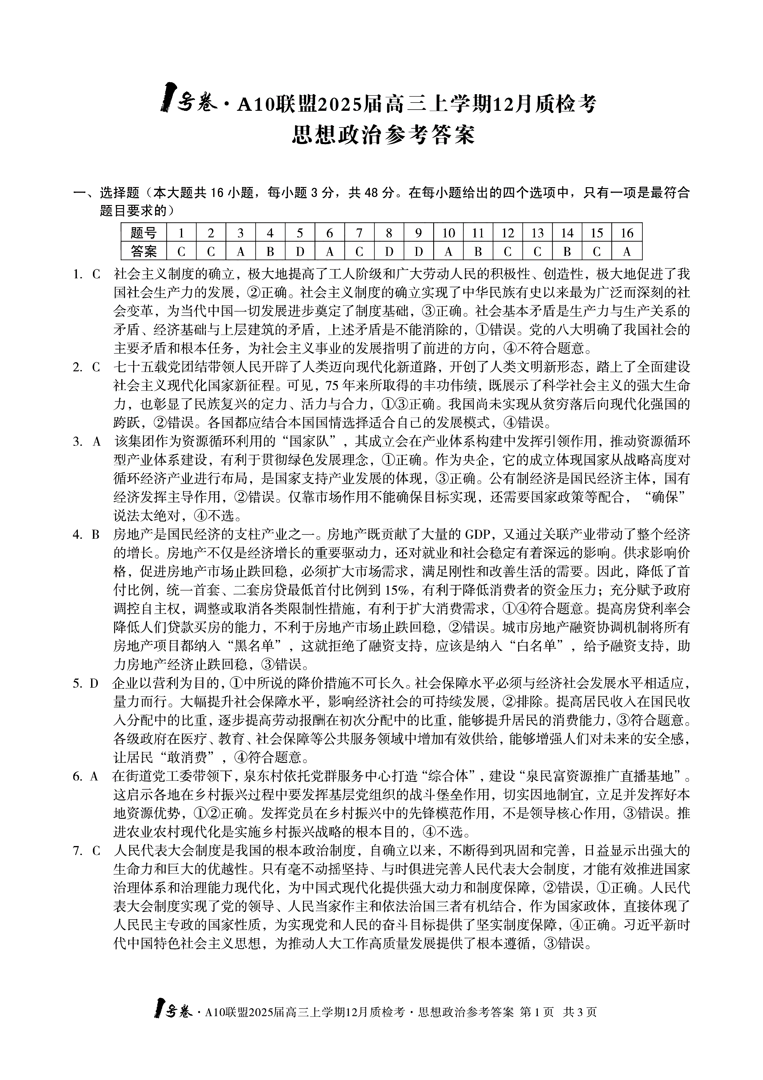 政治作为再选科目中四选二的科目之一,考试范围为必修一、必修二、必修三、必修四、选择性必修一。对于选考了政治的考生们来说,可以通过分析试题及答案,加深对政治理论的理解,提高政治素养。
