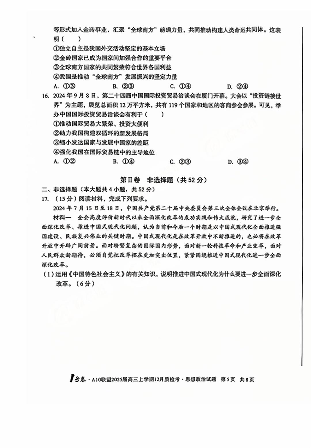 通过本次2025届安徽高三A10联盟12月联考全科试题及答案的汇总分析,考生们可以全面了解自己在各科目的掌握情况,及时发现自己的不足之处,并调整备考策略。本次考试的试题及答案将在每场考试结束后尽快更新,考生可以保持关注。