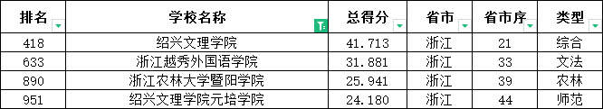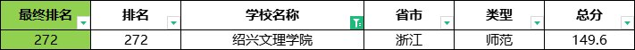 在绍兴市排名第一的绍兴文理学院,在全国排名第418名,比软科版本的排名低了146名!