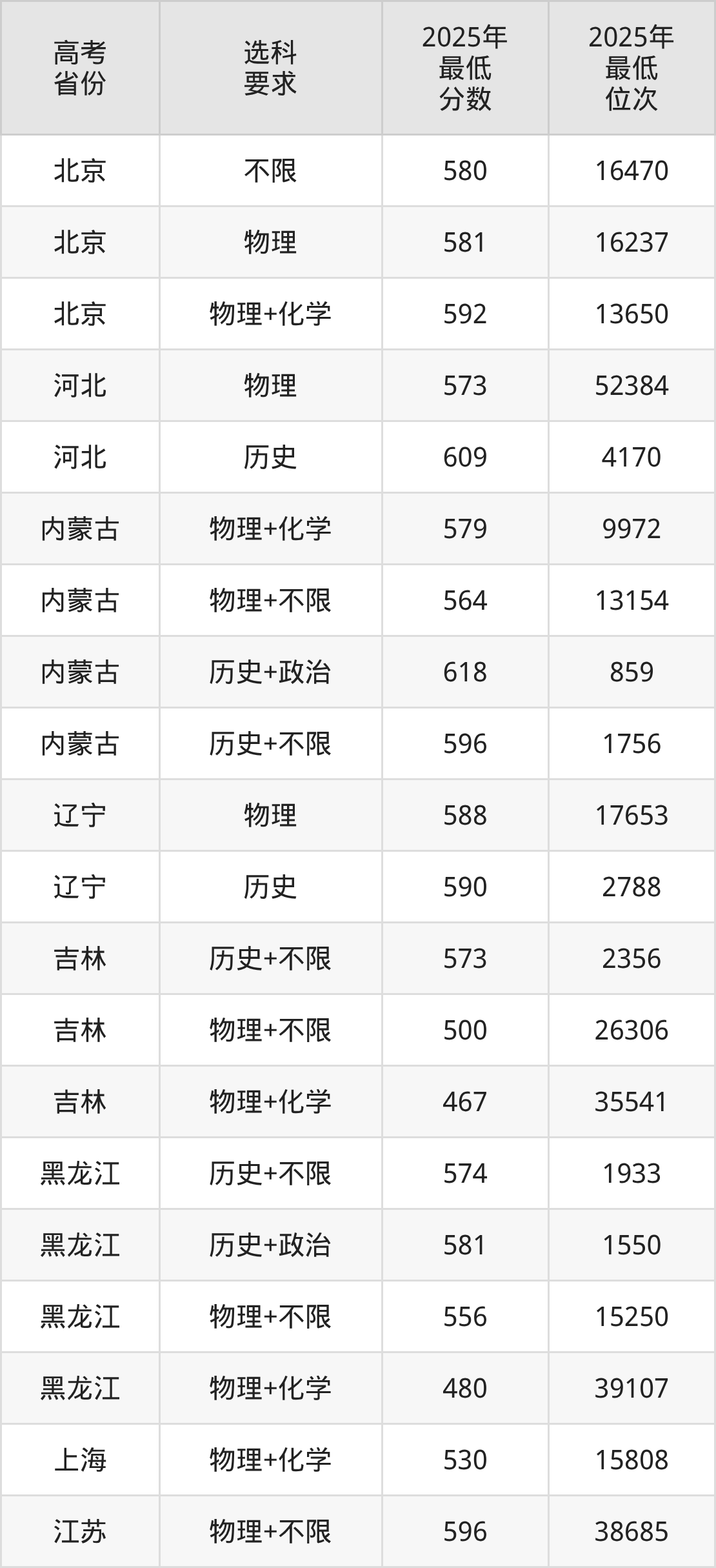 在2025年新疆高考理科招生时,985收分最低的是东北大学秦皇岛分校,最低分是523分、位次是6164位。再看长安大学,2025年在新疆理科的最低录取分数线是488分,最低位次是9599位。
